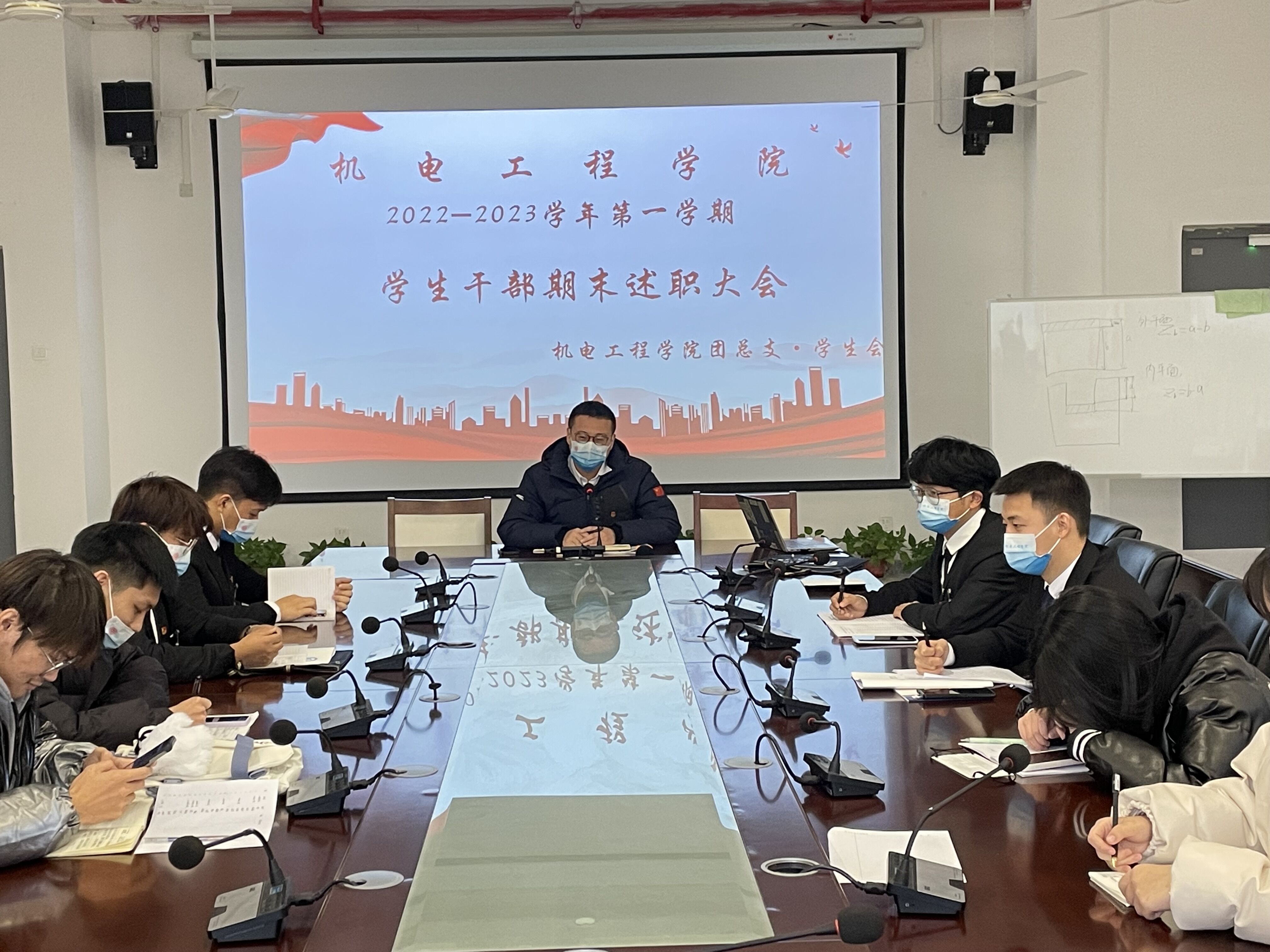 为深入学习贯彻党的二十大精神,进一步加强学院学生组织建设,促进学生组织工作制度化、规范化、系统化,12月10日下午,机电工程学院团总支学生会组织召开期末学生会干部述职大会,团总支书记张开以及团学干部代表参加会议。