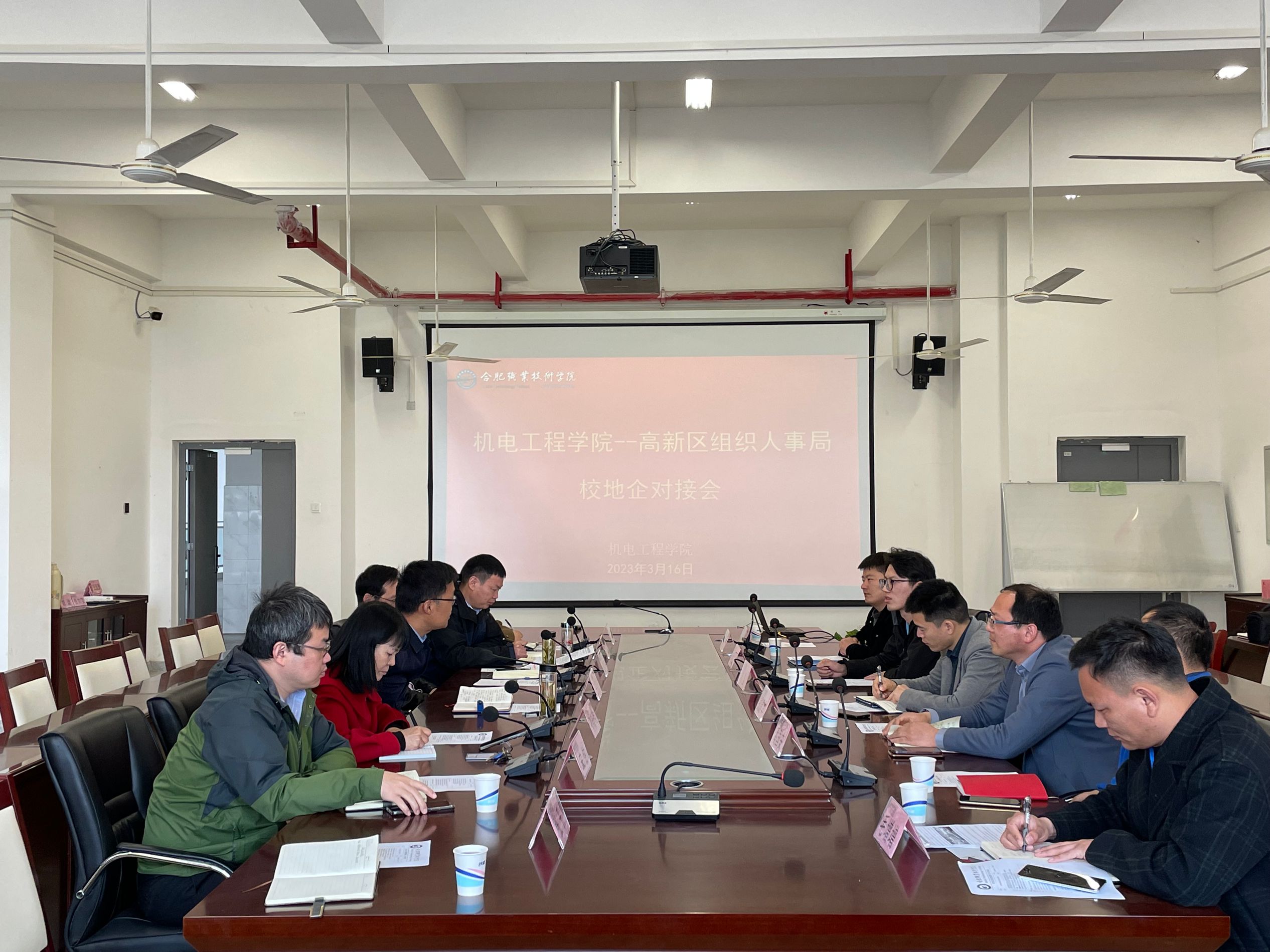 3月16日上午,高新区组织人事局就业处领导高新区就业创业一站式服务中心安徽一天电气技术股份有限公司安徽威灵汽车部件公司安徽美芝制冷设备有限公司合肥凯邦电机有限公司一行来我洽谈校地企合作。机电工程学院党政负责人及相关老师参与了洽谈。机电工程学院院长胡木林主持了会议