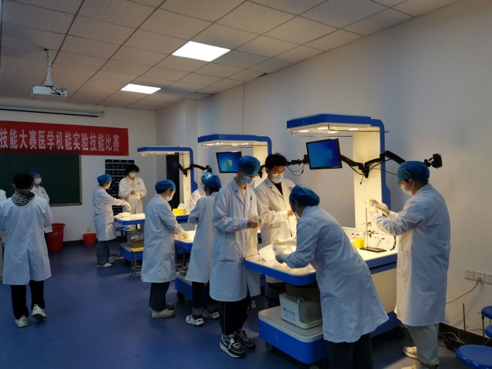 4月12日下午,由医学院组织并承办的合肥888集团学院第十六届校级技能大赛基础医学机能实验技能比赛决赛在护理北楼机能实验中心举行。