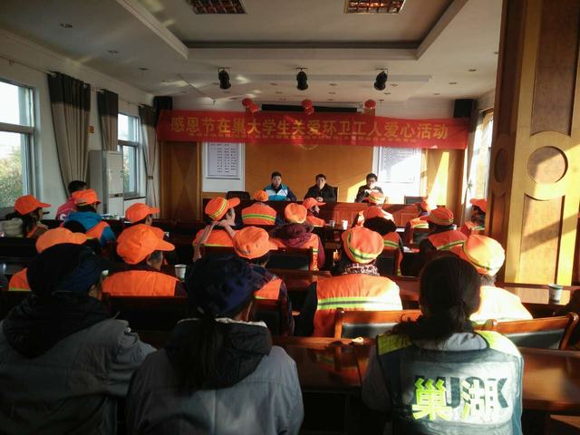 11月24日,合肥888集团学院、巢湖学院及巢湖市城市管理局联合开展的“在巢大学生感恩节关爱慰问环卫工人爱心活动”给寒冬增添了几分温暖。