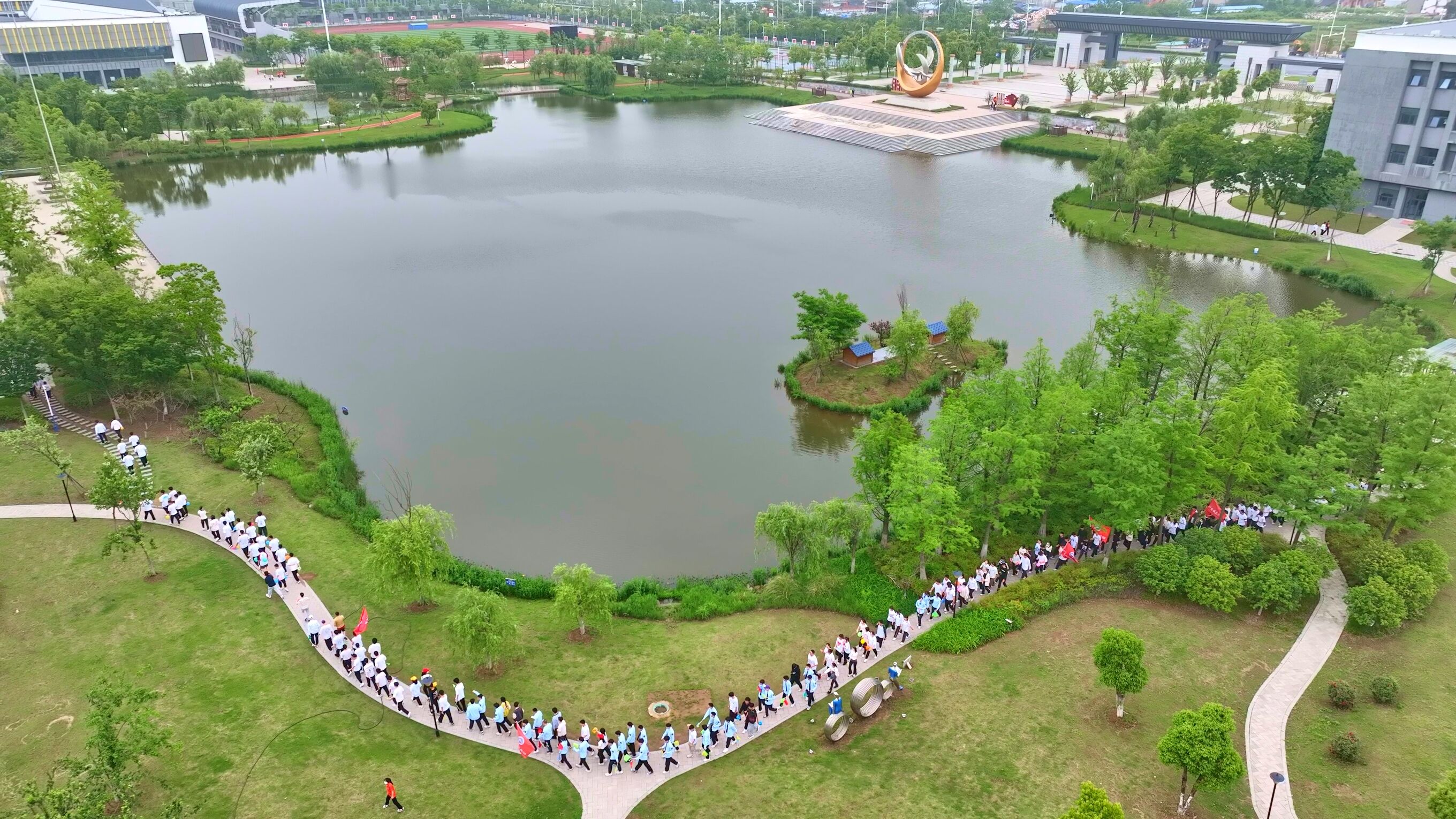 随着发令枪响,该院的党员方阵、教师方阵和学生方阵集体冲出起跑线,意气风发地奔跑在校园里,跑步过程中始终保持着昂扬的斗志和饱满的热情,团结一致,相互鼓励,活力满满,大家用运动诠释青春,用汗水追逐梦想。