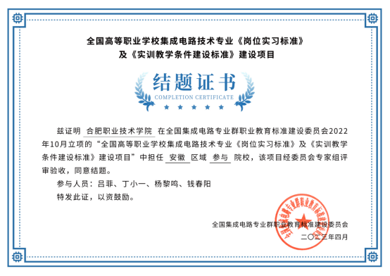 项目立项后,信息工程与传媒学院吕菲、丁小一、杨黎鸣和钱春阳四名教师组成项目小组,积极开展行业调研、收集资料、综合研讨,结合本校及安徽区域泛集成电路类专业建设实际,圆满完成各项立项工作内容并通过项目经专家组评审验收,顺利结题。