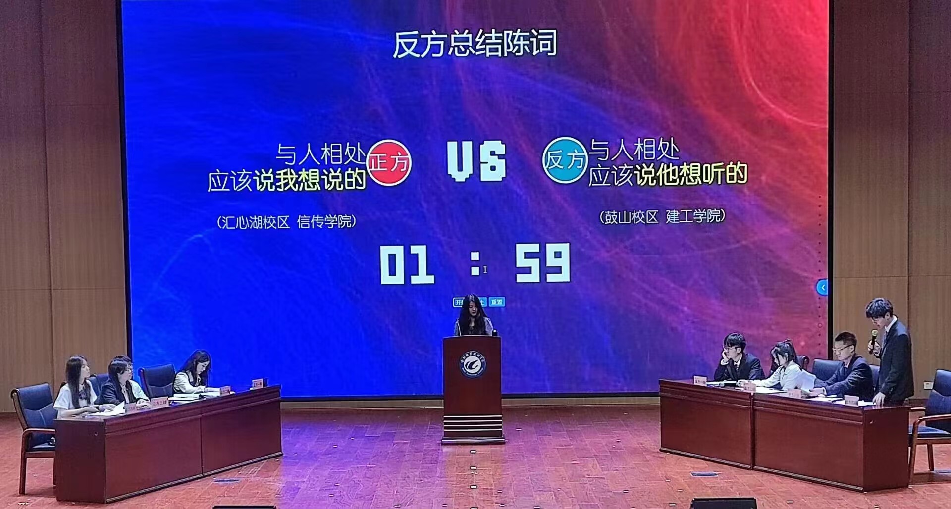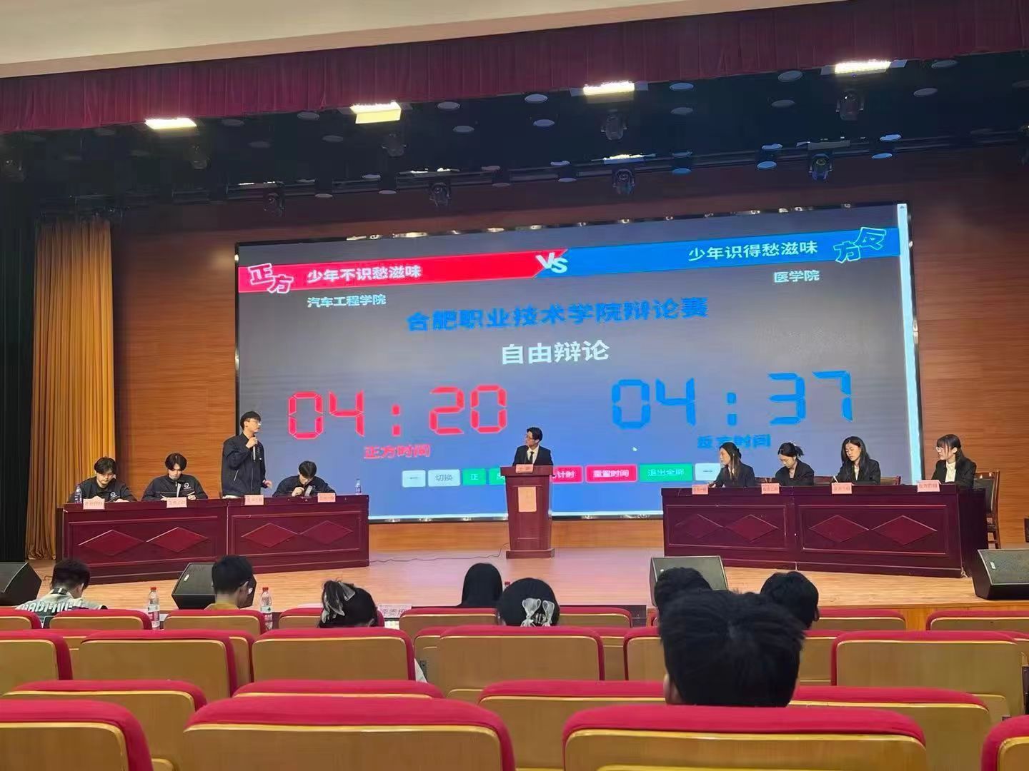 本届赛事聚焦科技发展、文化建设、青年成长等问题,分别围绕“学风建设”“科幻文学”“文明习惯养成”等主题展开了深入的挖掘与探讨。在赛场上同学们慷慨激昂,清晰地表达出观点,同时也谦虚地聆听着评委们的点评。
