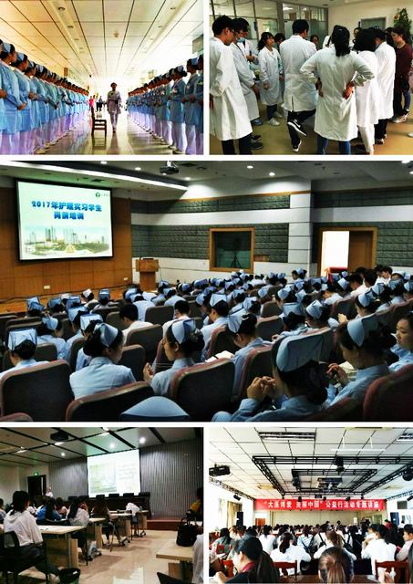 为了使每位学生能顺利进点实习,分院按照学院实践教学的要求,精心安排、周密落实。利用课余时间组织学生在专业一线教师的指导下进行技能操作练习,并于3月18、19日组织了严格的实习前技能考核,技能考核不及格学生继续练习直至合格方能进入实习岗位,力争实现零距离进岗实习。在奔赴实习点之前,分院于4月19日召开实习动员大会,布置实习工作。学院副院长孙兴林、医学分院院长王荣俊、医学分院党总支书记张明、医学分院副院长孙美兰、辅导员、班主任、实习指导老师及全体实习同学出席了会议。与会的各位领导对同学们即将踏上实习岗位进行了勉励,并就实习期间的教学管理、常规管理等各方面的要求进行了布置。