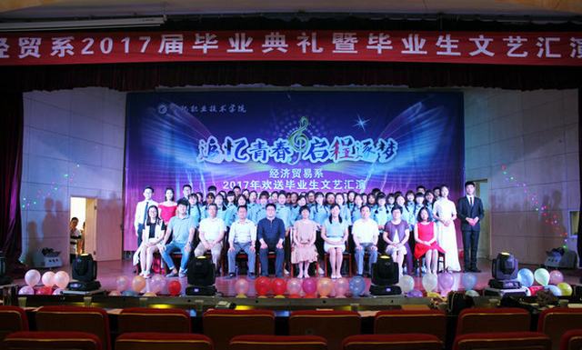 5月27日下午,经济贸易系2017届毕业典礼暨毕业生文艺汇演于在大学生活动中心隆重举行,学院党委副书记胡其云、学院副院长周晓隆莅临典礼,教务处、学生(保卫)处、团委及经贸系等师生共500余人参加。毕业典礼由经贸系党总支书记王秀珍主持。
