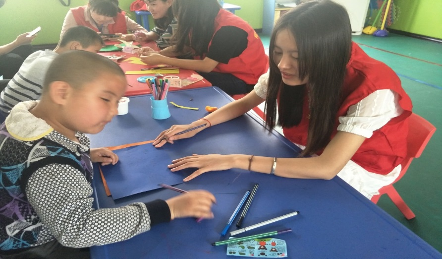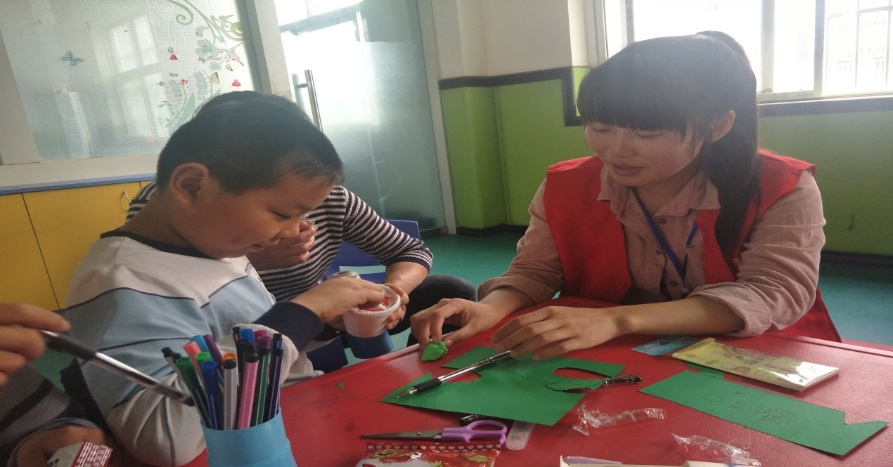 志愿者们在活动开始前做了充分的筹备工作,准备了许多教学材料和礼物。他们微笑着对待每一位孩子,有的志愿者到活动室里陪孩子做一些康复练习;有的志愿者教孩子们画画、做手工、玩游戏、剪纸,并与他们聊天,鼓励他们。“看到孩子们脸上灿烂的笑容,见到他们如此的自信、开心,我们很欣慰,很激动,即使他们生活在异样的世界里,他们应同样享受着本应有的快乐”。一位志愿者这样说道。此次志愿服务活动体现了我院志愿者“奉献、有爱、互助、进步”的志愿精神,发扬了“理解、尊重、关心、帮助”的助残理念,把扶持、关爱残疾儿童落到了实处。以拳拳之心为残疾儿童撑起一片晴朗的天空。(供稿:团委  编辑:朱鹏飞)