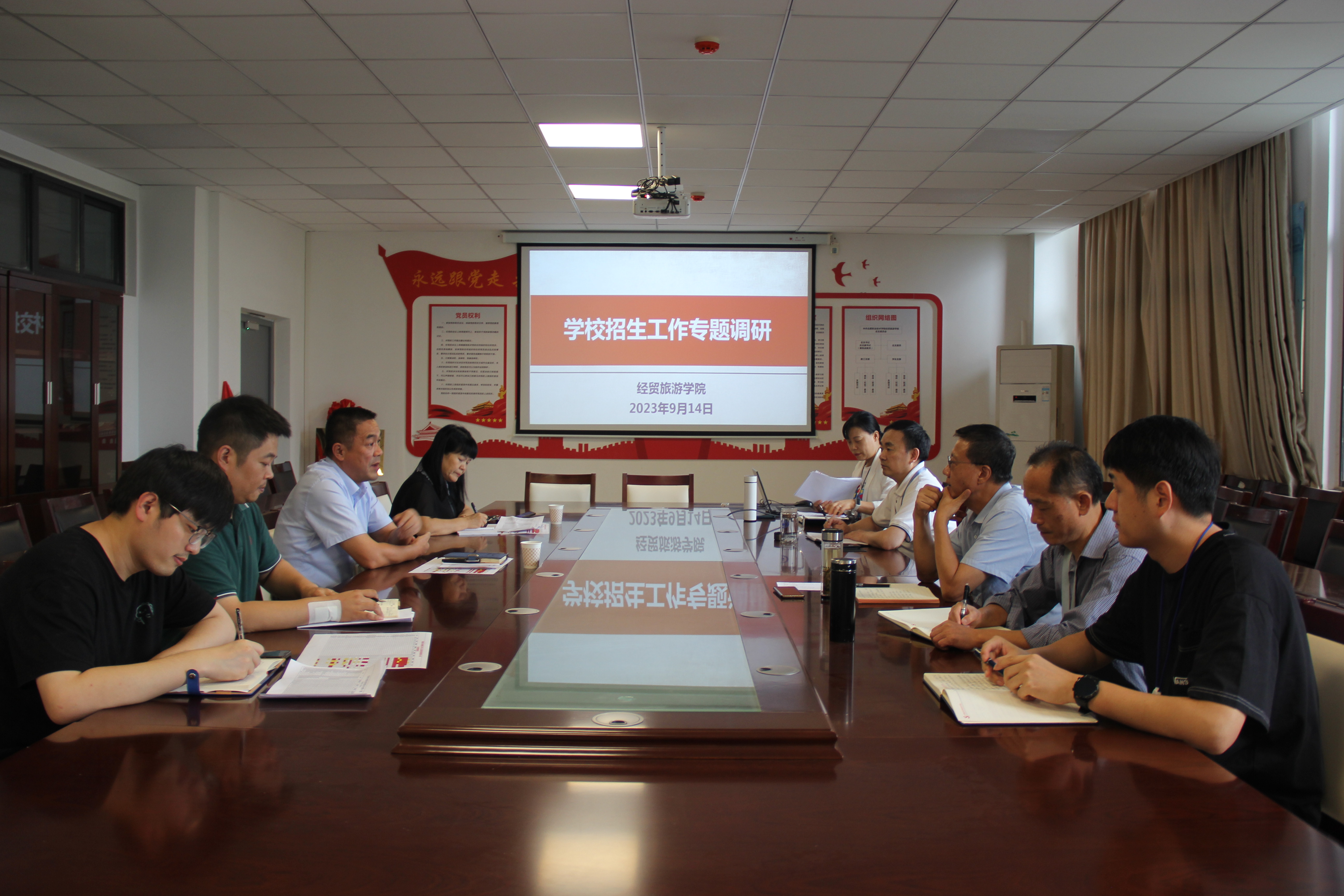 9月14日下午,校党委委员、副校长范家茂,教务处副处长孙新梅,教务处招生办主任张青一行到经贸旅游学院开展招生工作专题调研。经贸旅游学院党政负责人、学生管理及教学管理相关人员参加会议。