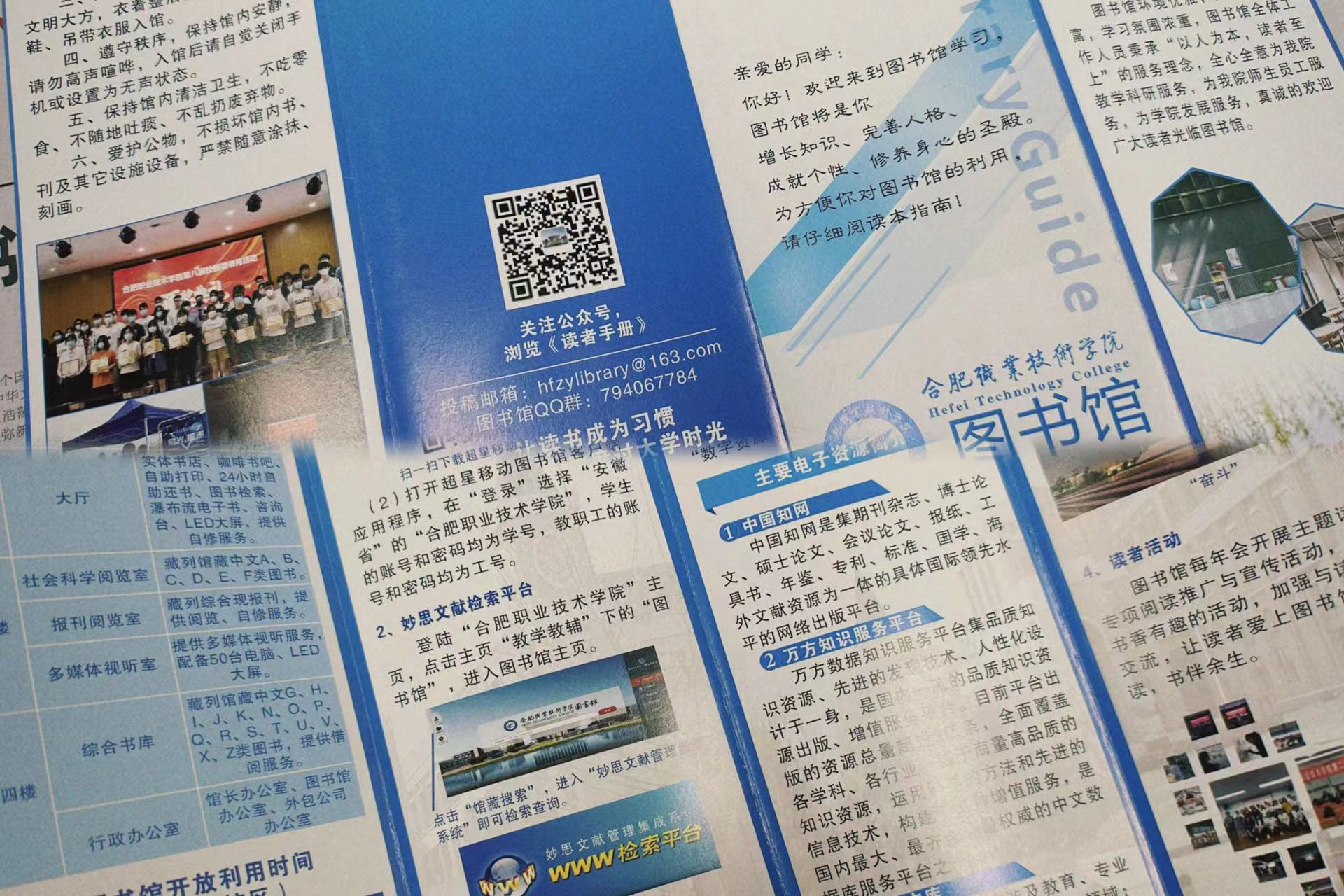 为帮助新生了解图书馆、熟悉图书馆,走进图书馆,此次活动专门推出《合肥888集团学院图书馆读者手册》,详细介绍了图书馆馆舍分布、馆藏文献资源、借阅查询服务、入馆须知等。希望同学们走进图书馆,叩击知识的大门,翱翔在知识的海洋里,快乐成长!