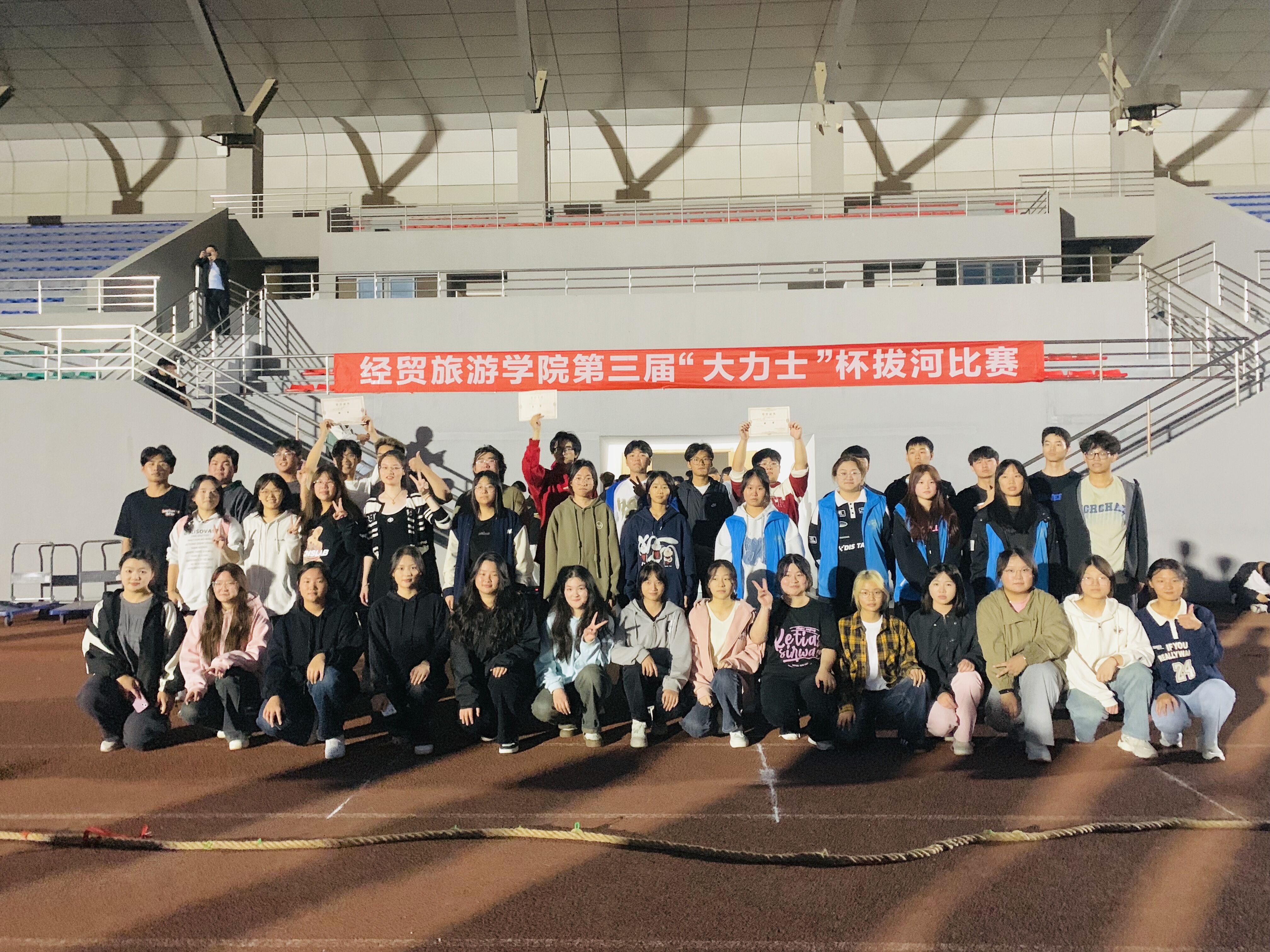为增强23级新生的团队合作意识,使新生班级成为一个更加团结友爱、奋勇争先的集体,经贸旅游学院第三届“大力士杯”拔河比赛于10月20日下午在学校东门广场热烈开赛。