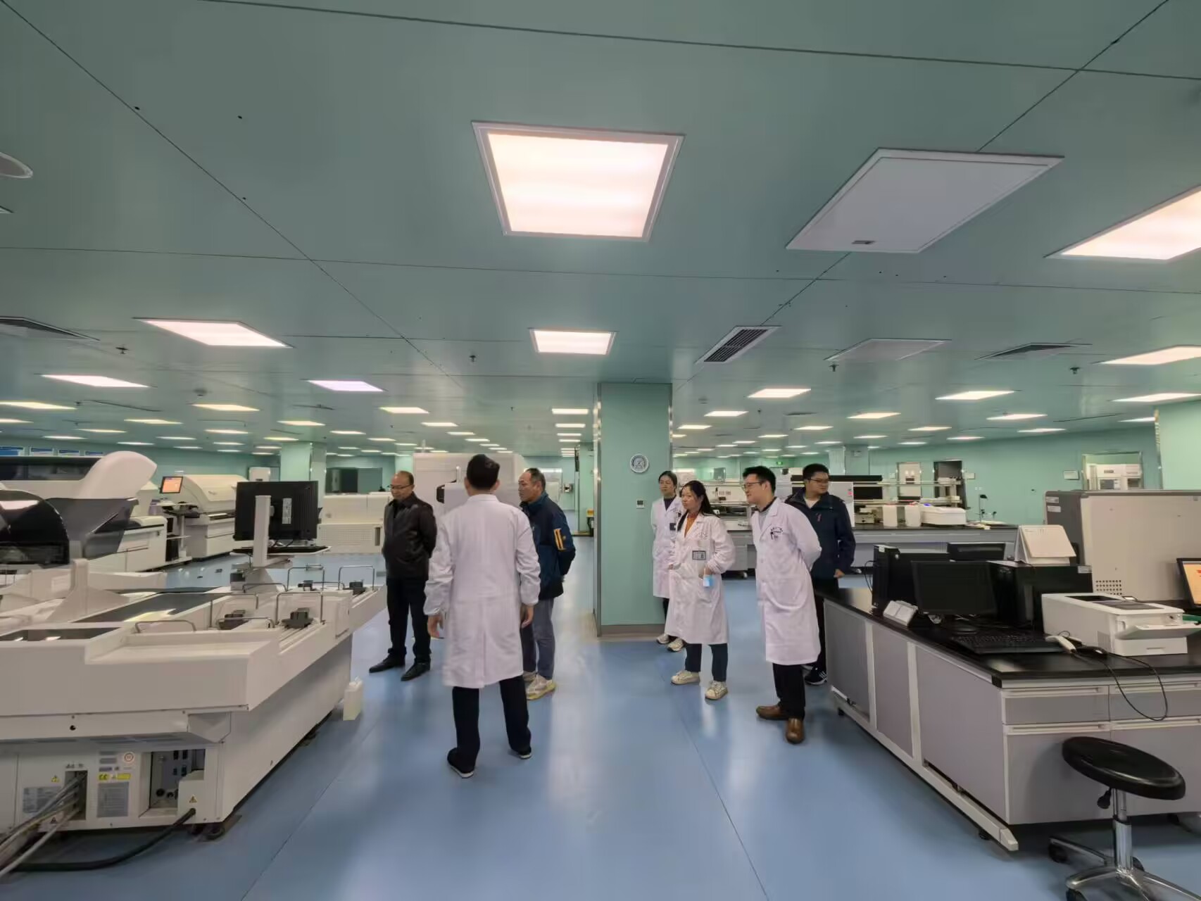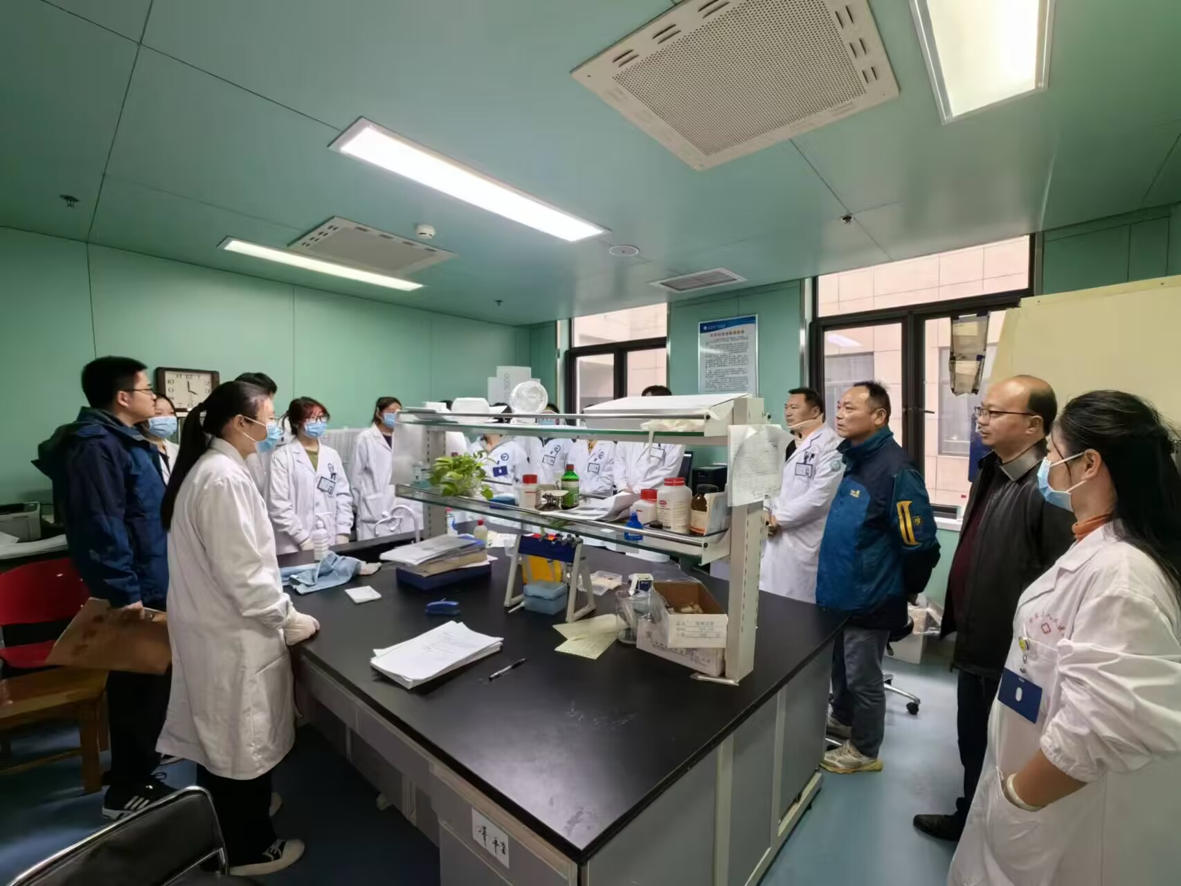 会后,院校双方人员共同前往检验科工作现场开展实习教学检查工作,查看科室教学相关资料、记录归档等情况,并看望和慰问了带教老师与同学,在微生物实验室实地观摩了2022级医检肥东班微生物检验的现场实践教学。