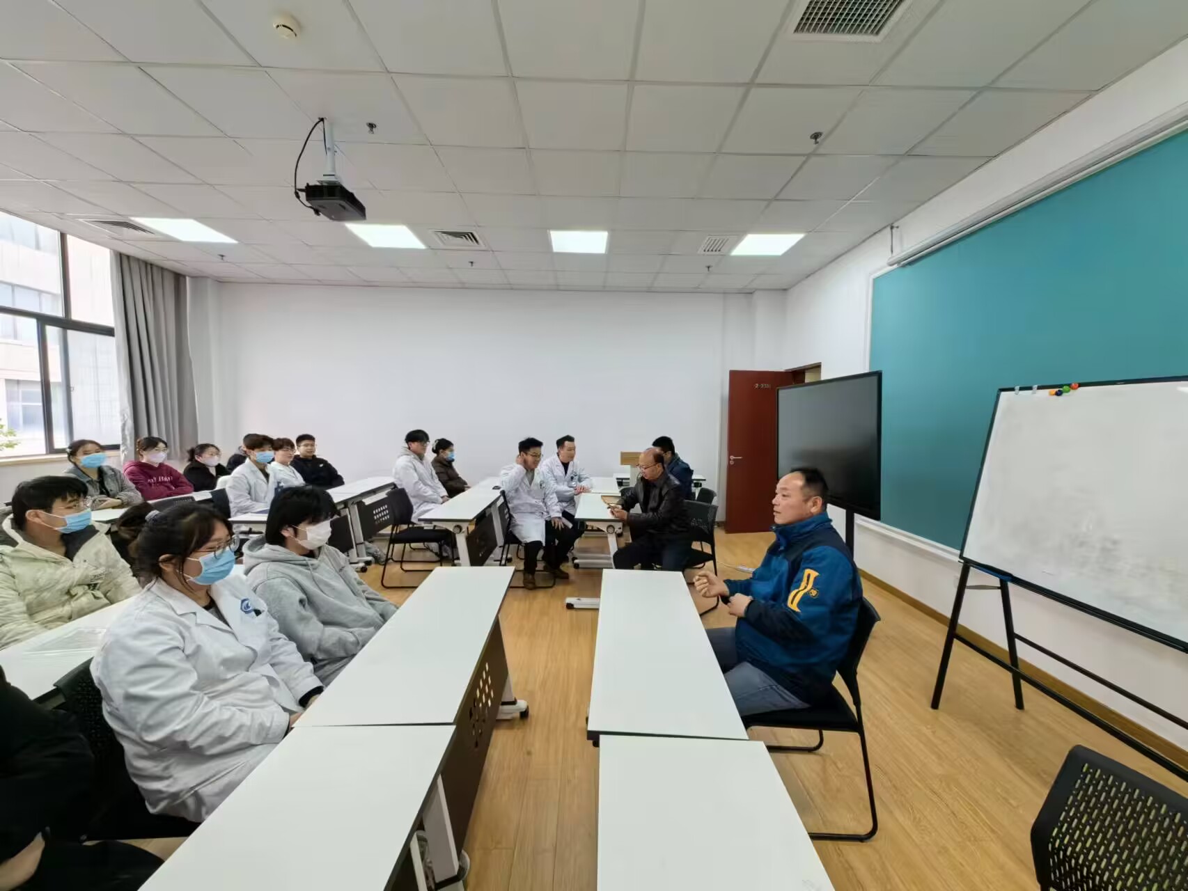 随后在医院行政楼二楼会议室开展期中实习检查工作,大家共同查看了同学们对实习各科室的总结以及填写的反馈表,召开了四个实习专业全体实习学生的座谈会,听取学生的心声,对他们关心的问题进行了一一解答,对出现的问题及时反馈医院沟通解决,切实保障学生利益,确保顺利完成实习。(供稿:医学院 代永沛 初审:蒋斌 审核:杨璨)