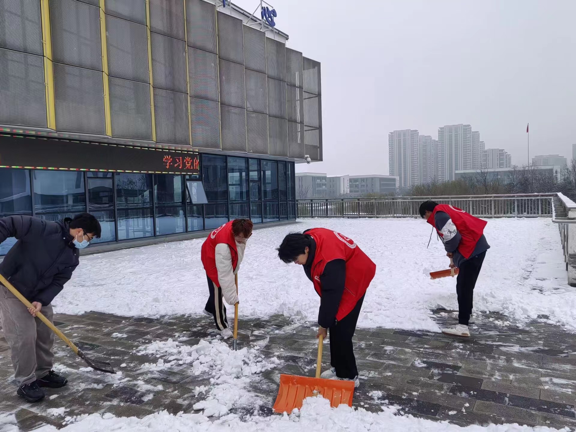 12月18日,合肥迎来降雪,在带来美丽校园雪景的同时,也给师生的日常出行带来了诸多安全隐患。校团委第一时间组织各级团学组织、广大青年志愿者积极有序投身校园扫雪除冰任务,为大家安全通行提供了保障,为寒冷的冬日增添了别样温暖。