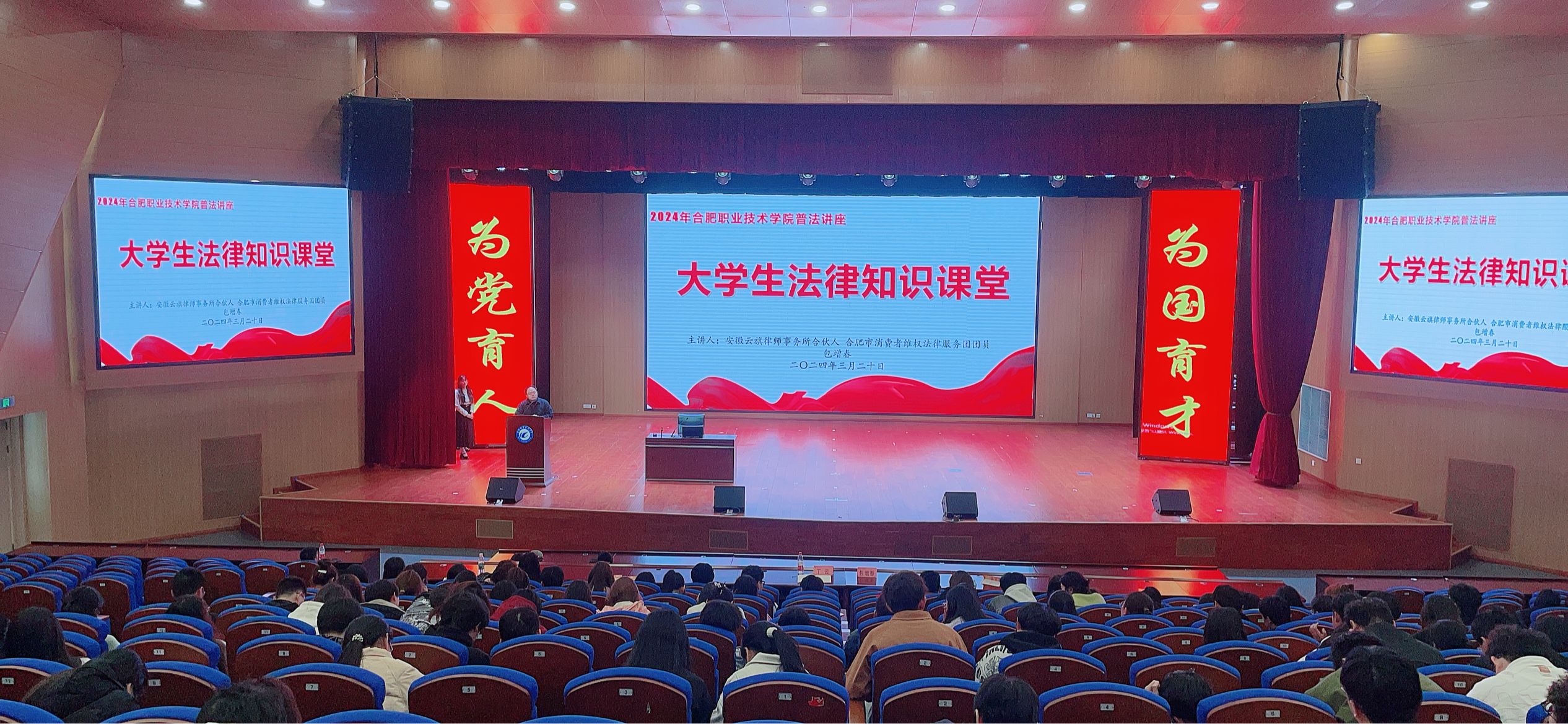 大学生法律知识大讲堂。3月20日下午,汇心湖校区校学生会联合合肥市消费者权益保护委员会邀请安徽省云旗律师事务所合伙人、合肥市消费者维权法律服务团团员包增春律师在大学生活动中心二楼报告厅来一场别开生面的大学生法律知识大讲堂。