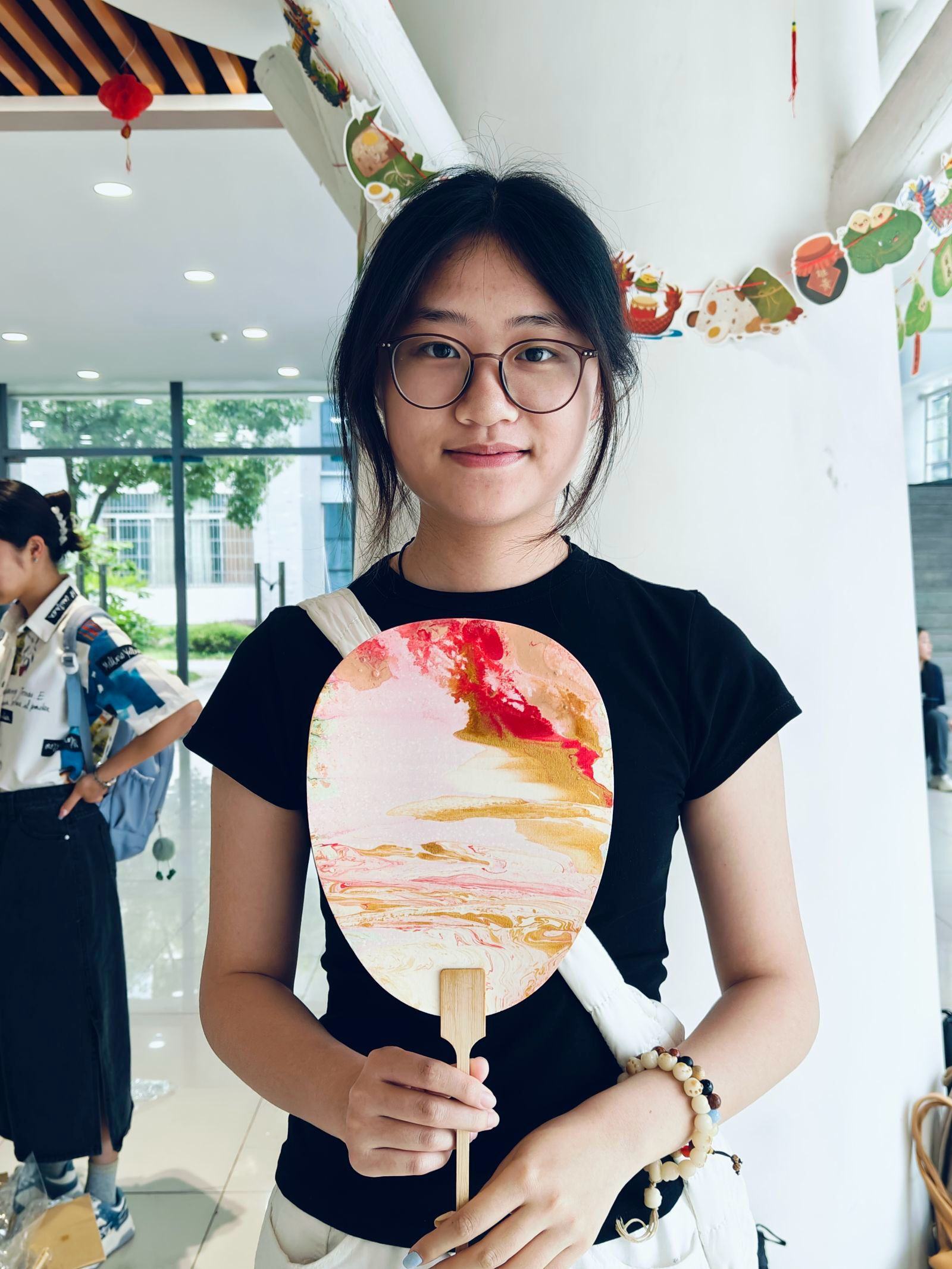 DIY非遗漆扇:传承漆艺文化。非遗漆扇制作技艺作为中华民族传统文化的瑰宝,具有悠久的历史和深厚的文化底蕴。在志愿者的指导下,同学们认真学习了漆扇的制作工艺,从选材、上漆到绘制图案,每一步都体现了非遗文化的独特魅力。同学们用自己的双手,制作出了一把把精美的漆扇,不仅是对传统文化的传承,更是对自己动手能力的锻炼与提升。