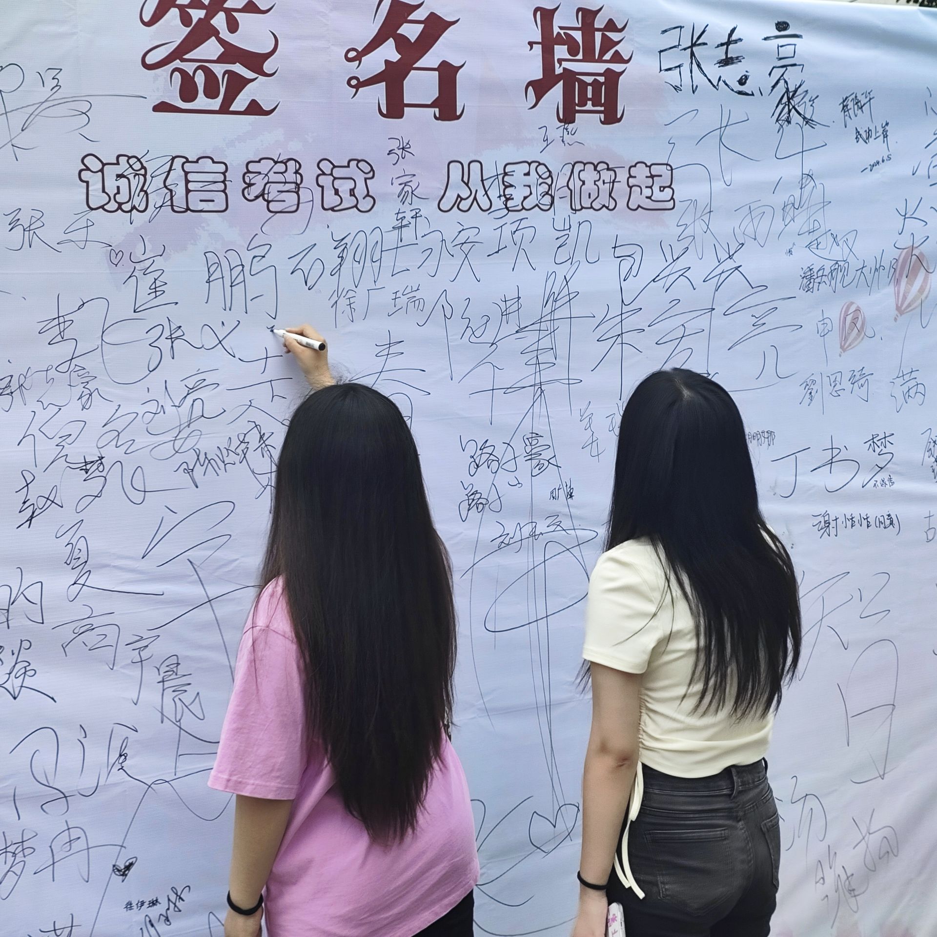 接着,在志愿者的引导下,参与活动的学生有序地在“诚信考试,从我做起”的横幅上签下了自己的名字,表明自己对于诚信考试的坚定决心。