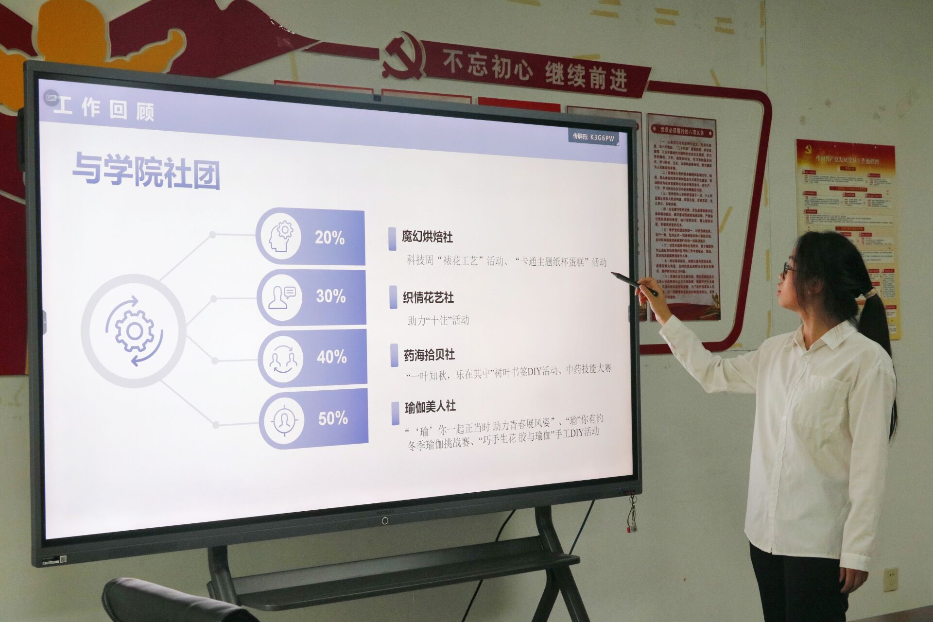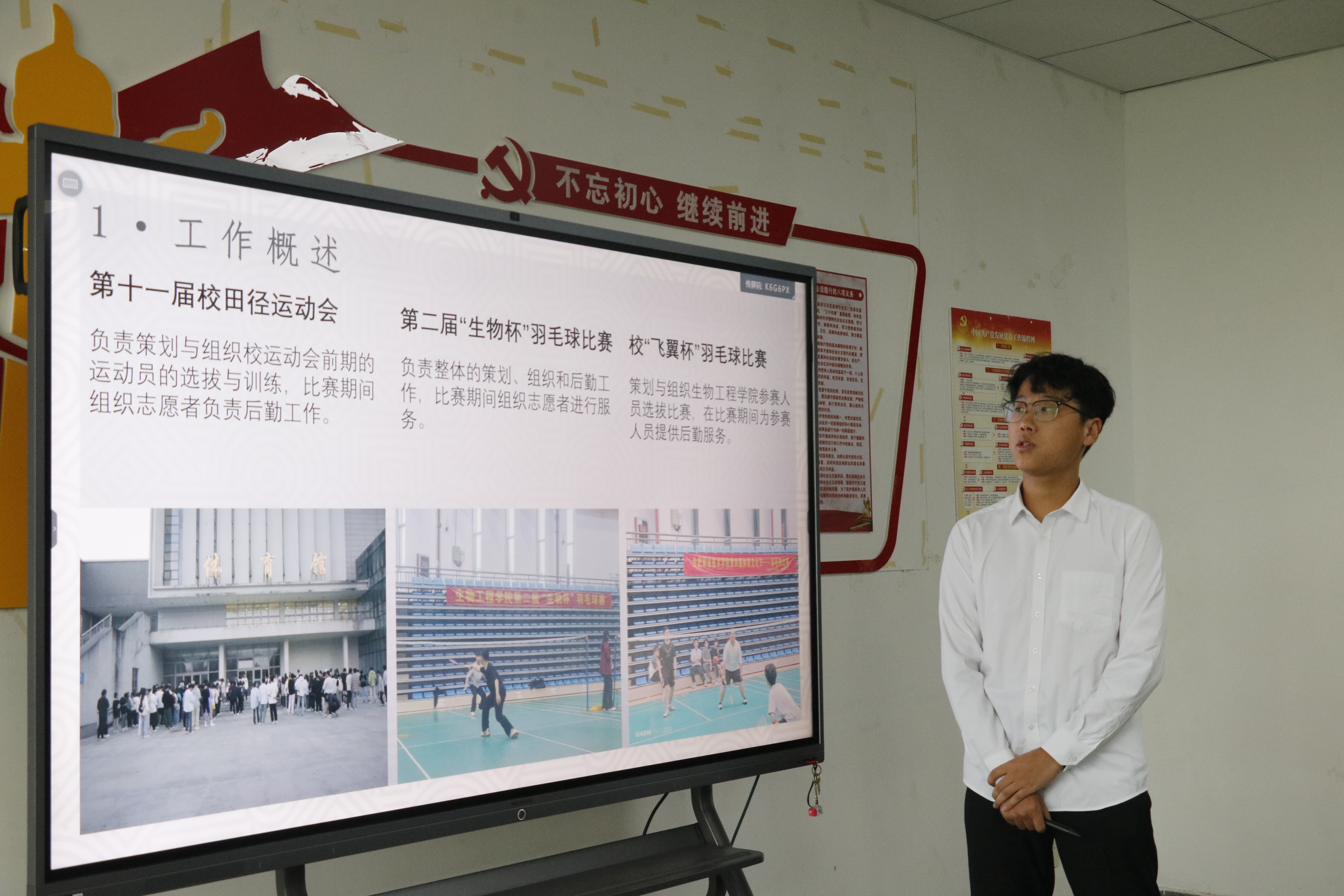 会议开始,学生会各部门负责人依次以PPT的形式进行述职。社团部、组宣部、体育部、办公室部、学权部部长分别总结了上一年度的工作,并对未来如何更好开展相关工作提出了一系列的改进措施,做了部署和规划。