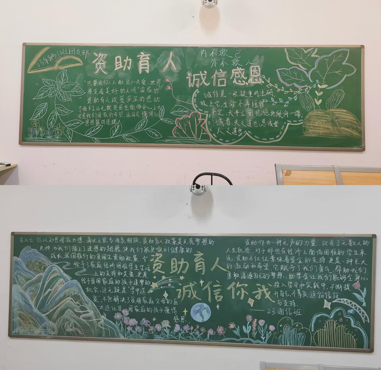 开展黑板报作品宣传活动。轨道交通学院在此次主题月活动中开展诚信主题黑板报宣传作品活动,学生借助黑板报形式制作诚信主题宣传作品,积极参与其中。活动引导学生培养"讲诚信,有担当"优良品质,助力营造感恩奋进、诚信践诺的良好校园文化氛围。