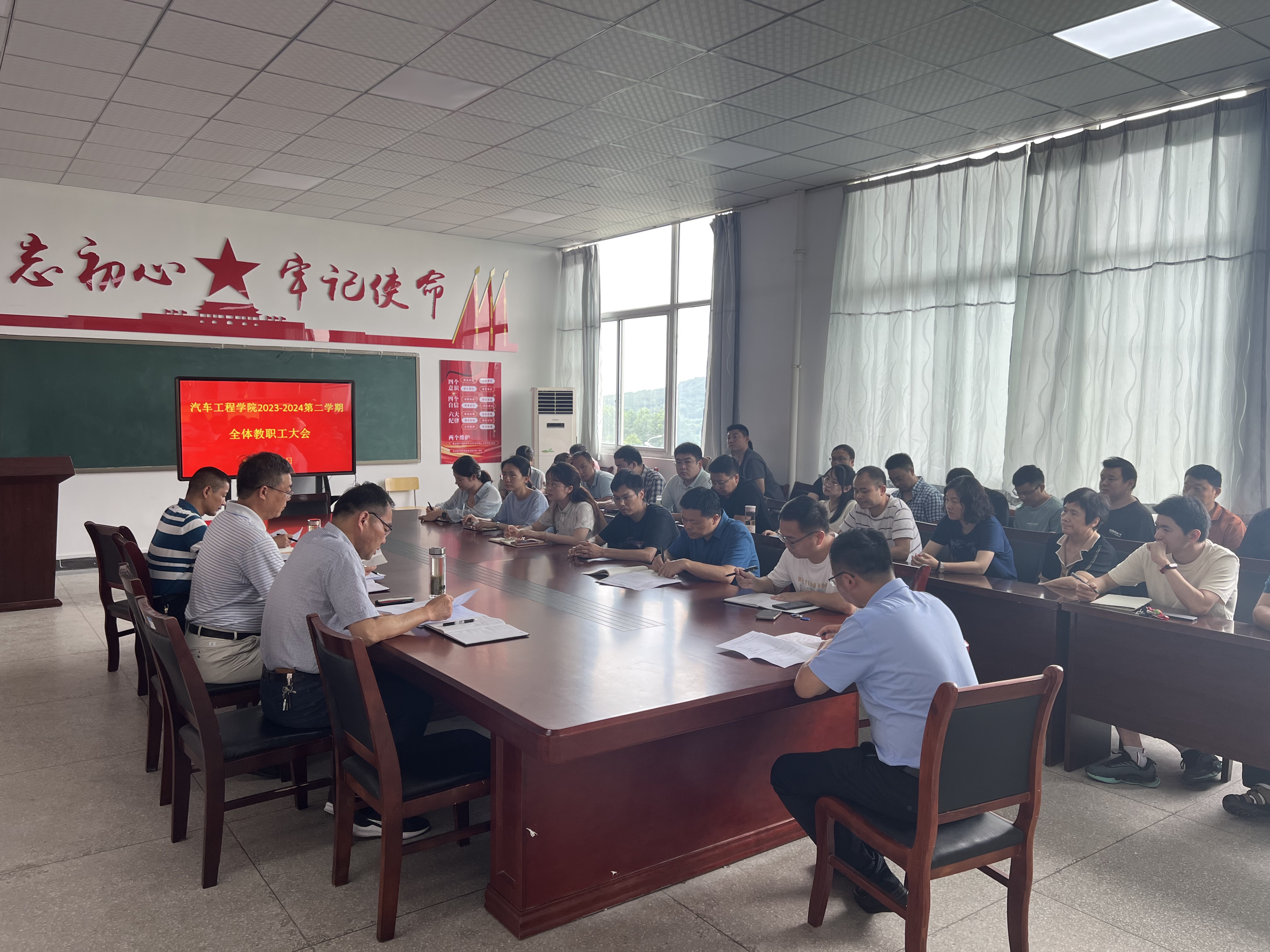 为深入学习贯彻习近平总书记关于依法治国的重要思想,强化党的纪律建设,推进清廉学校建设,并对上半年工作进行全面总结,规划下半年阶发展蓝图,7月3日,汽车工程学院于汽车楼四楼会议室召开2023-2024第二学期期末全体教职工大会。会议由汽车工程学院副院长(主持工作)许鹏主持,汽车工程学院全体教职工参会。