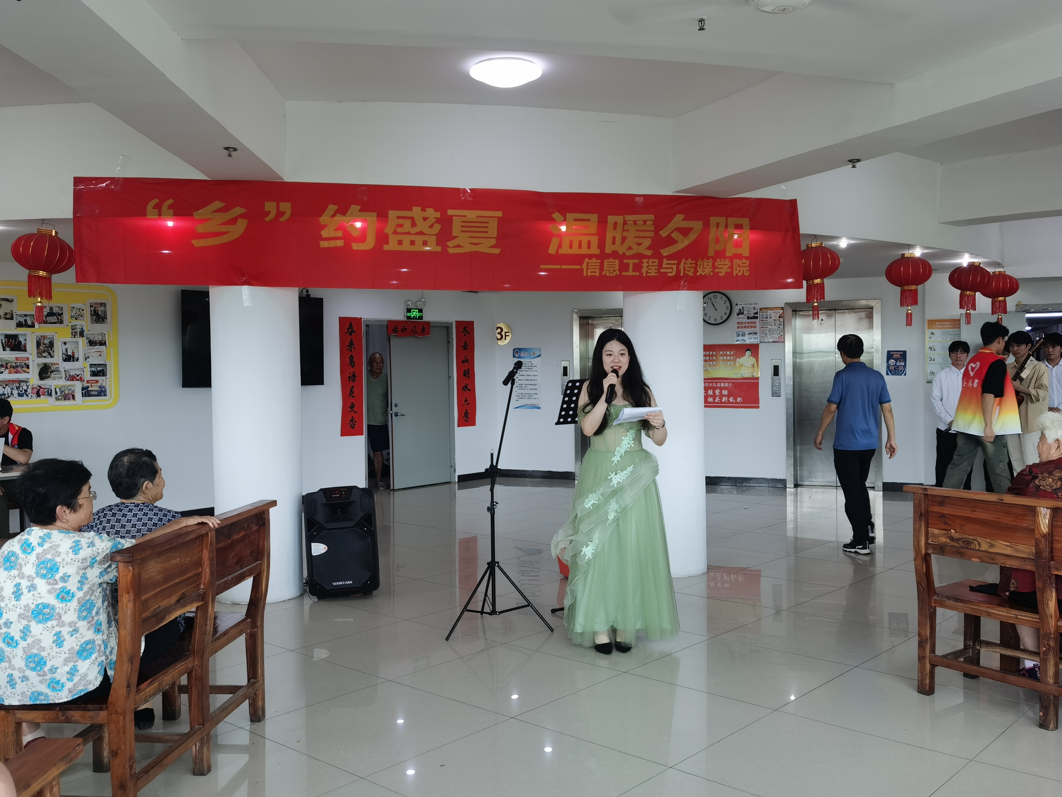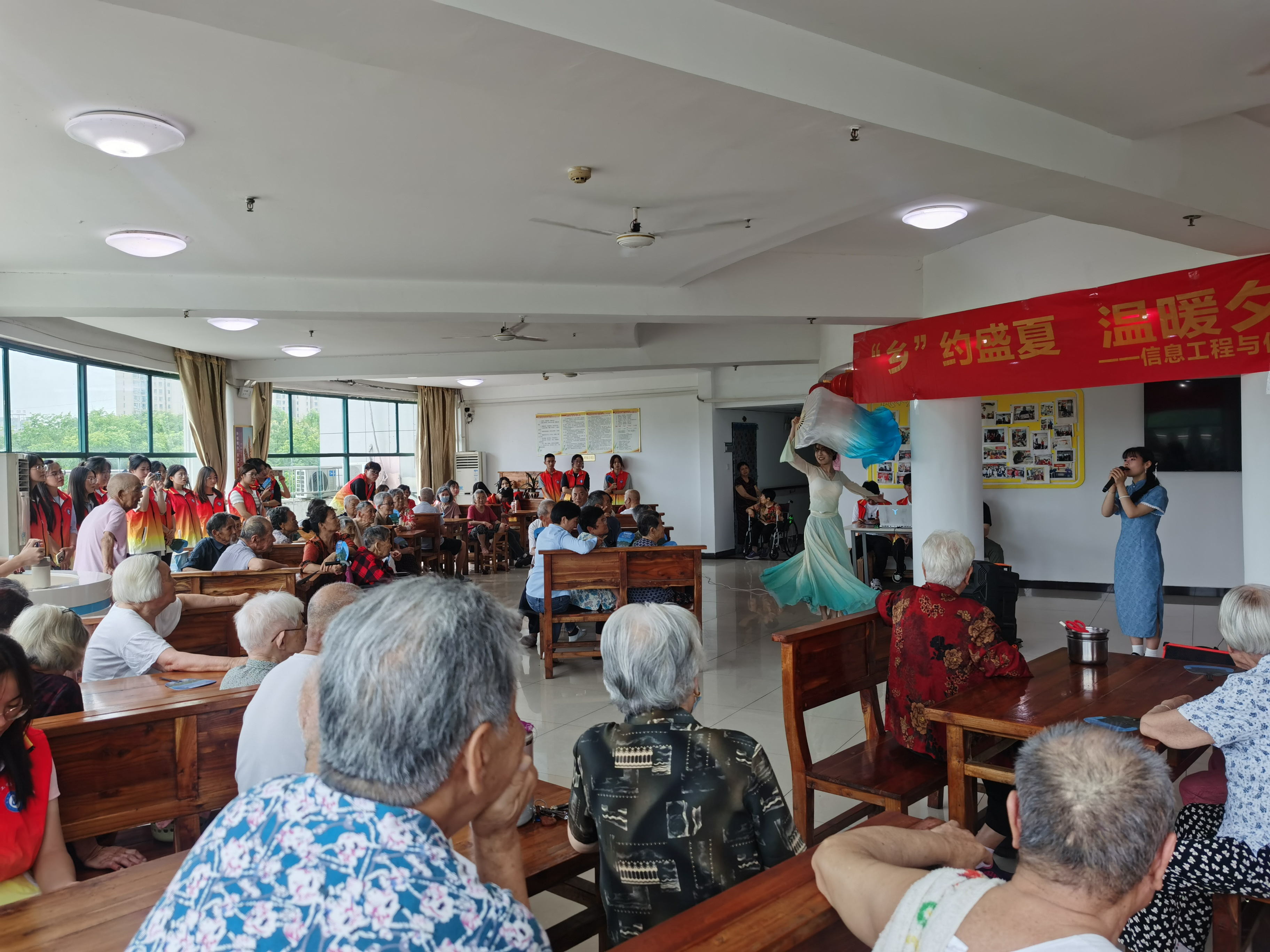 “人生易老天难老,岁岁重阳。”为弘扬中华民族尊老敬老的传统美德,进一步增强大学生爱老助老的社会责任意识,7月10日上午,信息工程与传媒学院暑期“三下乡”社会实践团队走进庐江县怡和园养护康复中心,开展以“‘乡’约盛夏 温暖夕阳”为主题的系列活动,建设大学生社会实践基地,调研智慧养老新模式,开展志愿服务与文艺演出活动。