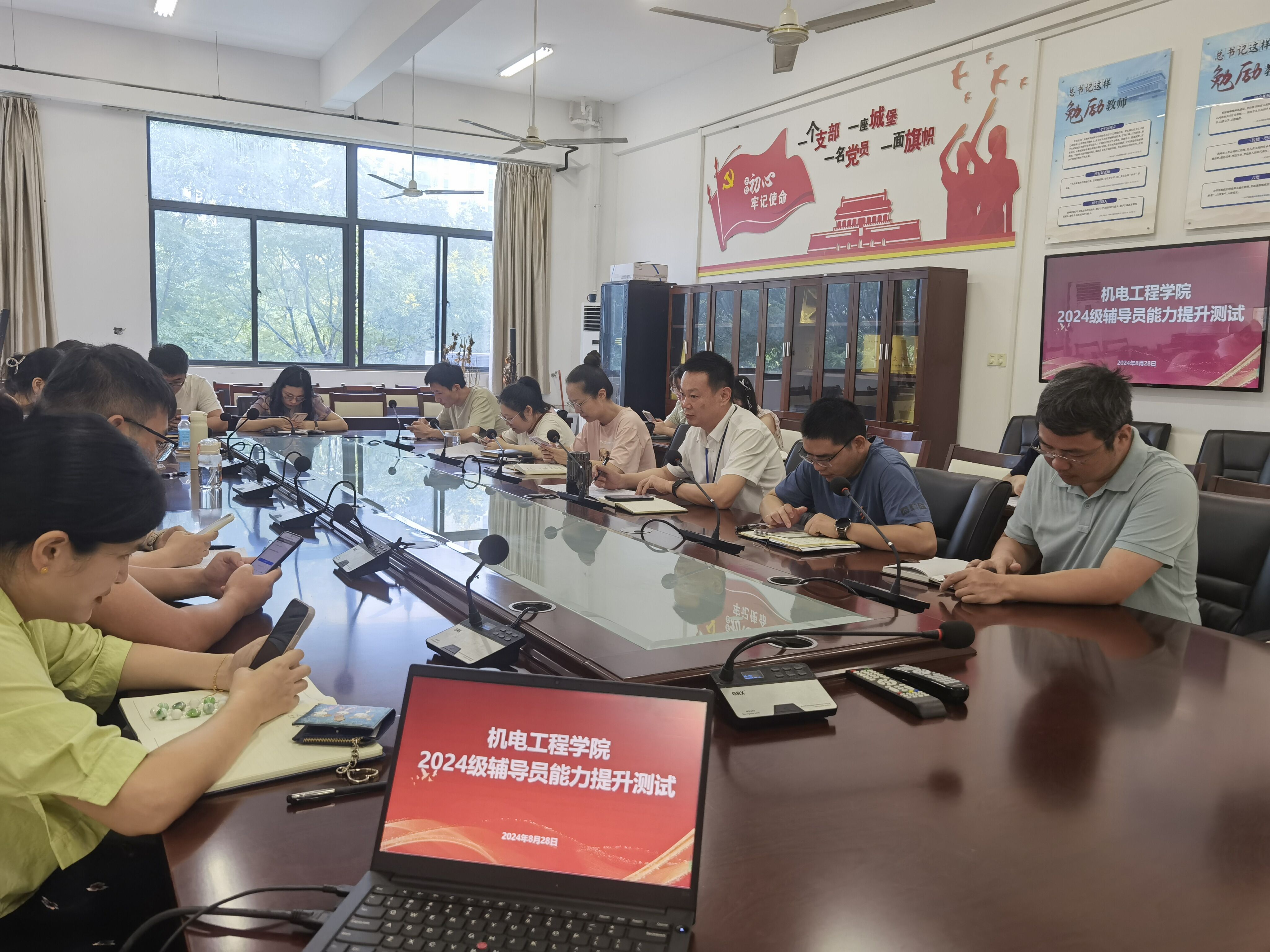 会议伊始,为了更好做好24级辅导员能力提升与培训工作,学院采取“以考代培”的方式,围绕奖助、团学、心理健康、教室和宿舍管理、学生党员发展、就业创业、学生日常管理及学籍等方面内容,进行了线上“机电工程学院24级辅导员能力提升测试”。以测试找差距、明方向,促使辅导员不断提高自身理论水平和业务能力。