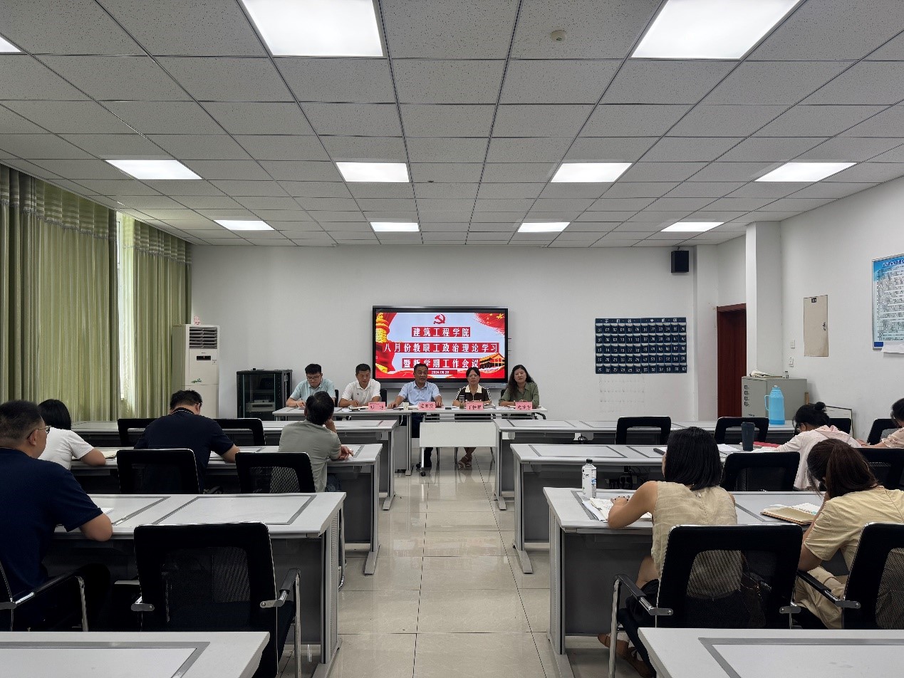 8月28日下午,建筑工程学院在建工楼301会议室召开八月份教职工理论学习暨新学期工作会议,校党委委员、副校长范家茂,该院党政班子及全体教职工参加会议,会议由该院党总支副书记(主持工作)丁怡琴主持。