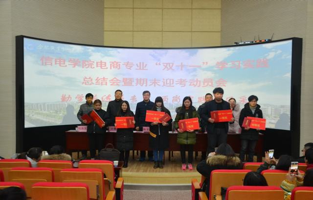 2018年元月4日下午,信电学院在图书馆二楼报告厅隆重举行电商专业“双十一”学习实践总结会暨期末迎考动员会,二级学院党政负责人及16、17级全体电子商务专业学生参加了此次活动,会议由电子商务教研室主任韩路主持。