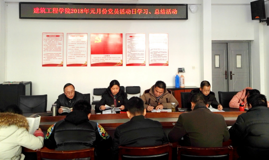 1月10日是我校2018年第一个党员活动日,建筑工程学院党总支按照校组织部下发的通知要求,在建筑工程学院党员活动室组织全体党员同志开展了以“不忘初心 牢记使命 奉献担当”为主题的集中学习、总结活动。活动由该院党总支书记李红雨同志主持。