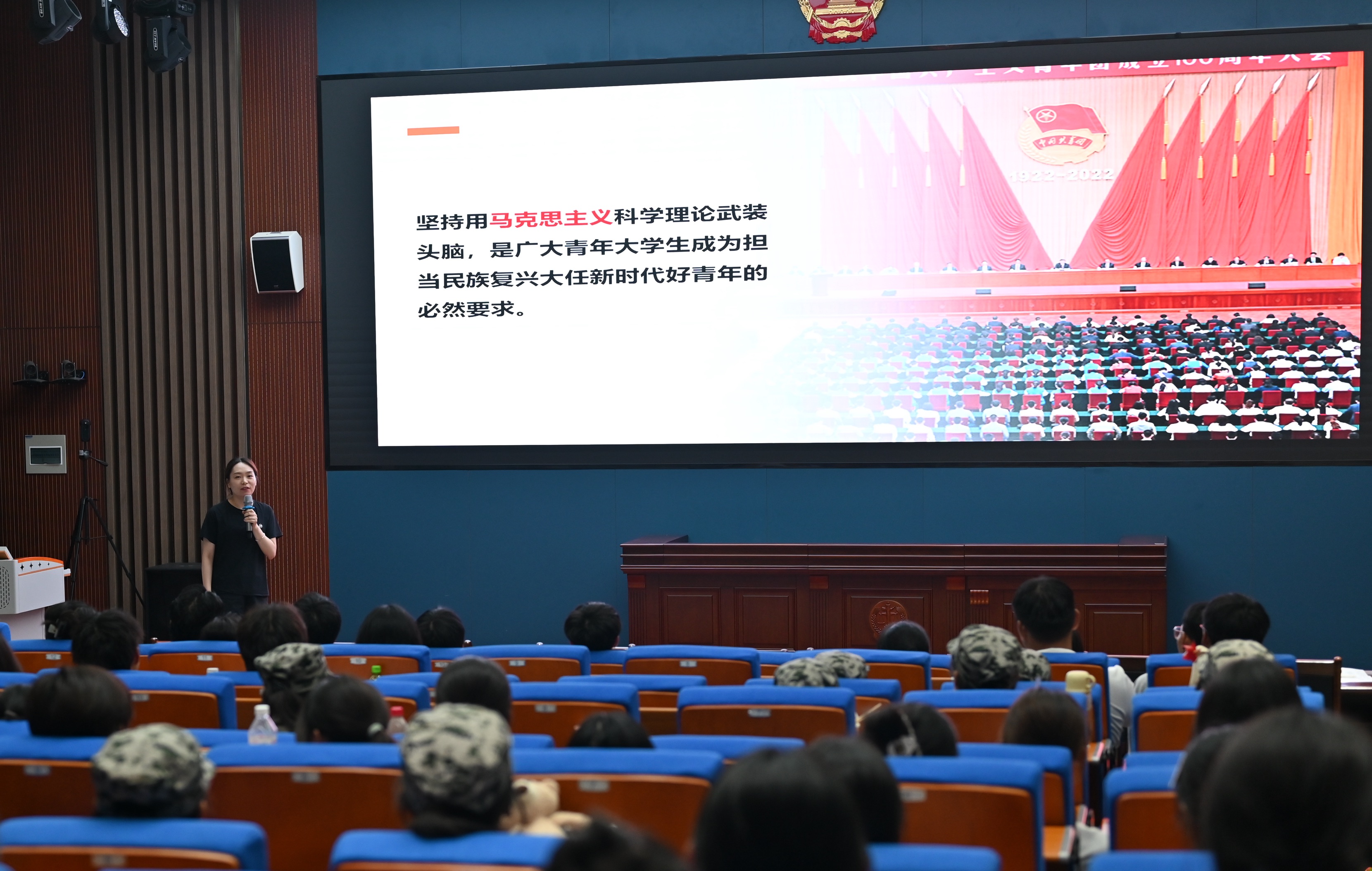 随后,朱子琪老师指出,新时代青年树立正确的理想、坚定的信念,就要坚定信仰马克思主义。百年来,在马克思主义及其中国化成果的科学指引下,在中国共产党的坚强领导下,一代代中国青年把青春奋斗融入党和人民事业,成为实现中华民族伟大复兴的先锋力量。今天加入青马学会的同学们也要立志做坚定的马克思主义者,做有理想、敢担当、能吃苦、肯奋斗的新时代好青年。