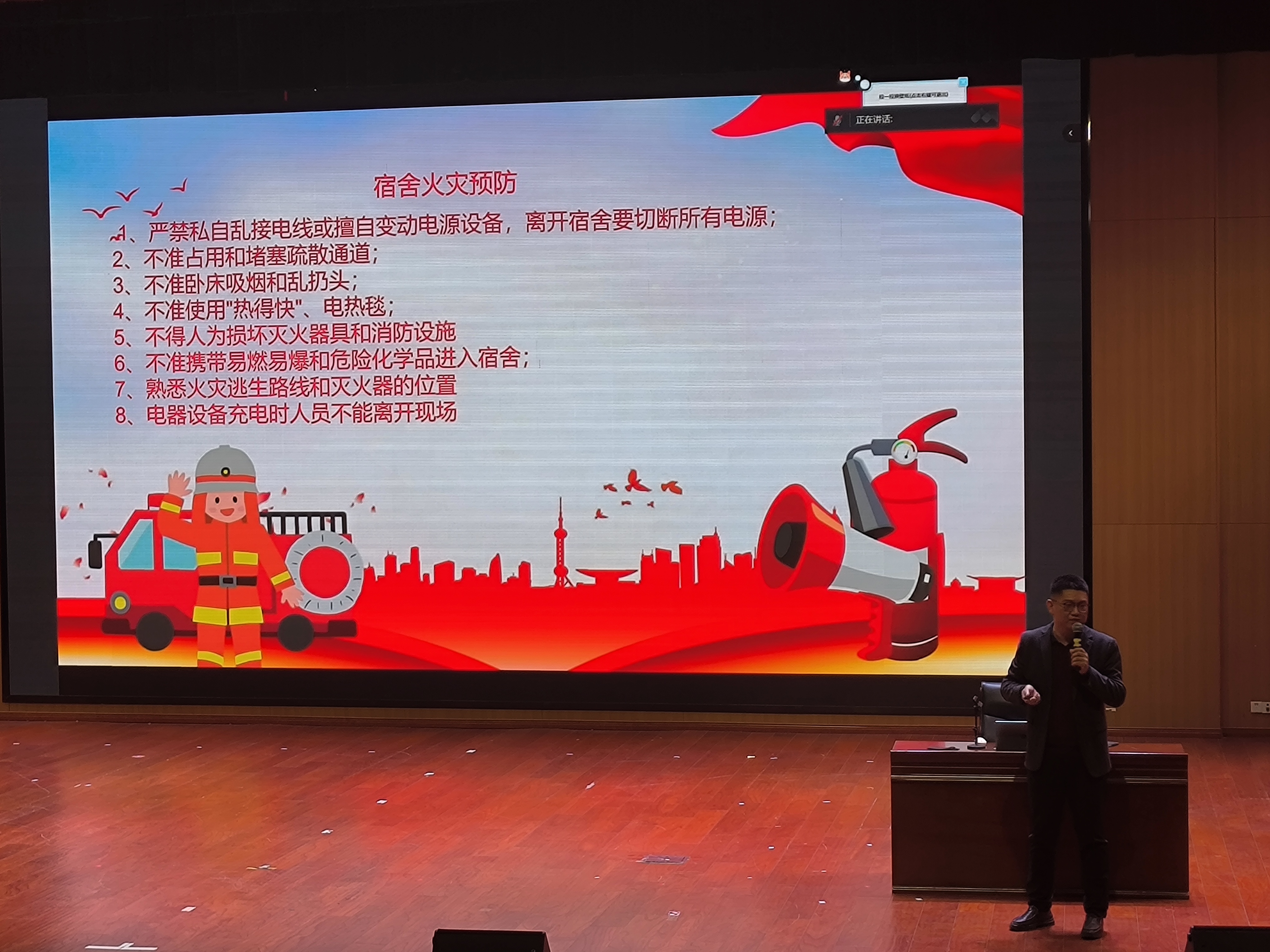为切实加强学院安全工作,提高学生安全防范意识、安全疏散与自救能力,保障师生生命安全,打造平安校园,在学校保卫处大力支持下,机电工程学院于11月7日下午在大学生活动中心二楼报告厅对24级全体学生开展消防安全知识教育宣讲。本次讲座特邀消防培训讲师唐晨龙工程师担任主讲。校保卫处处长王继强现场指导,该院党总支副书记丁迎春(主持工作)主持。