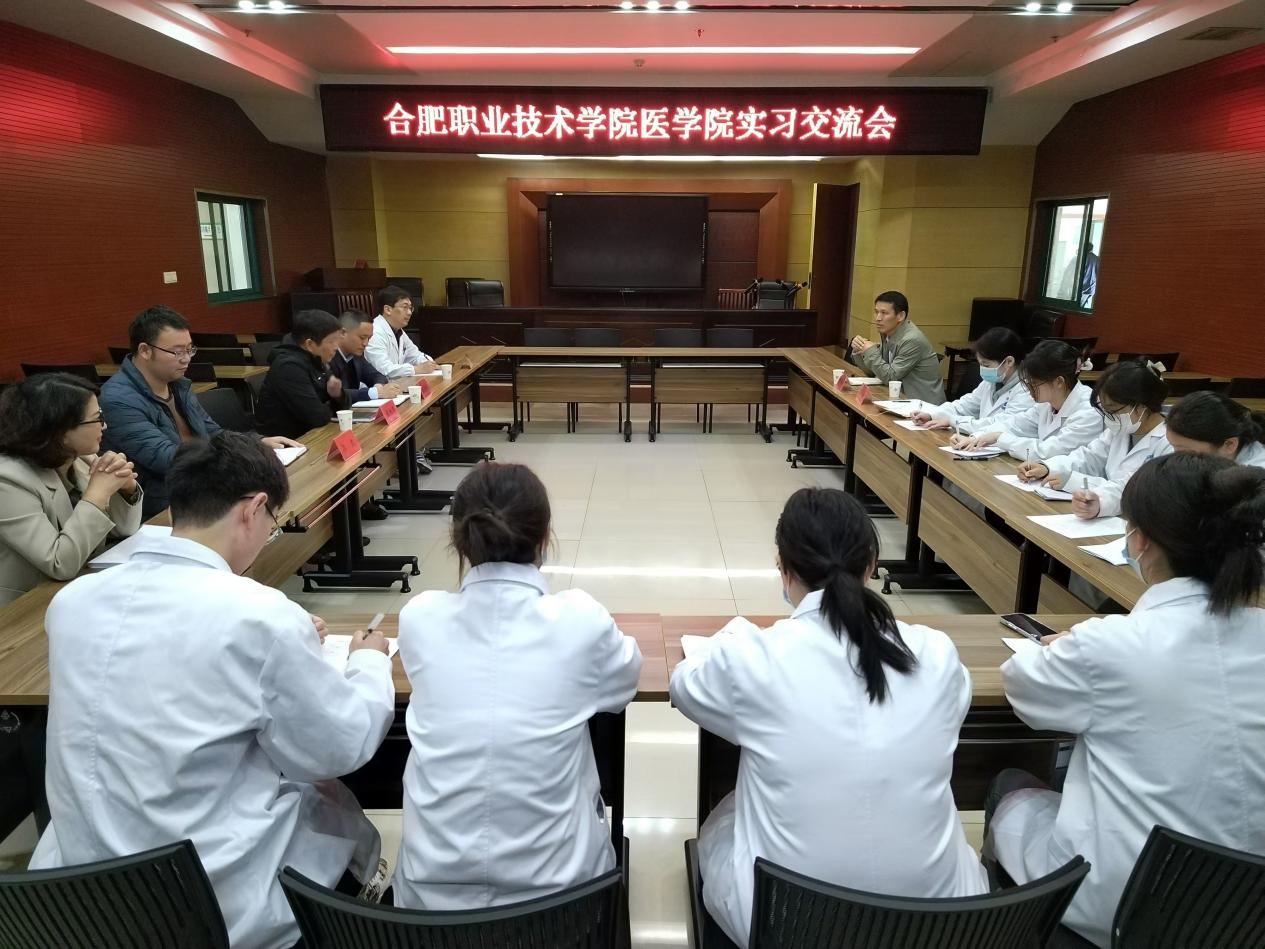 交流会上,程祖华简要介绍了近几年医院快速发展的情况,充分肯定了我校实习生们的实习态度,并对下一步院校合作提出了期望。陈洪涛介绍医院组织的各项专业带教活动,通过加强理论与实践的结合,提升实习生临床专业能力。医教科贾延秀对实习生的具体实习情况和参加临床技能操作比赛备赛情况给实习生们提出了宝贵建议。参加交流会的实习生就实习感受、体验与收获以及实习过程中存在的一些问题等进行了反馈。邹华兵对含山县人民医院为我院实习生提供的实践平台表示诚挚感谢,期待与医院在实习实践、人才培养方案修订、教学医院建设、双主体办学、毕业生就业等方面进一步加强合作。