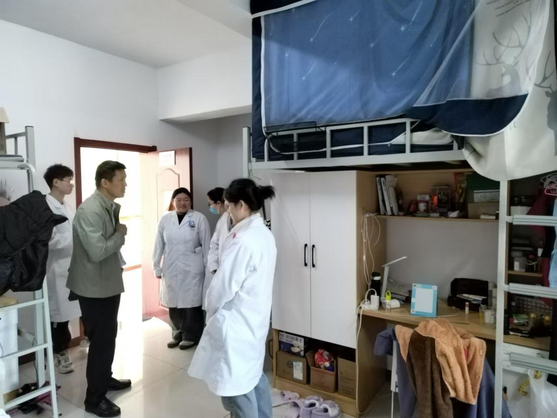 随后,检查组一行来到实习生宿舍进行现场检查,详细了解实习生住宿条件、宿舍环境以及日常生活情况,叮嘱实习生们强化安全意识,营造一个温馨、和谐、有利于学习和成长的宿舍环境。