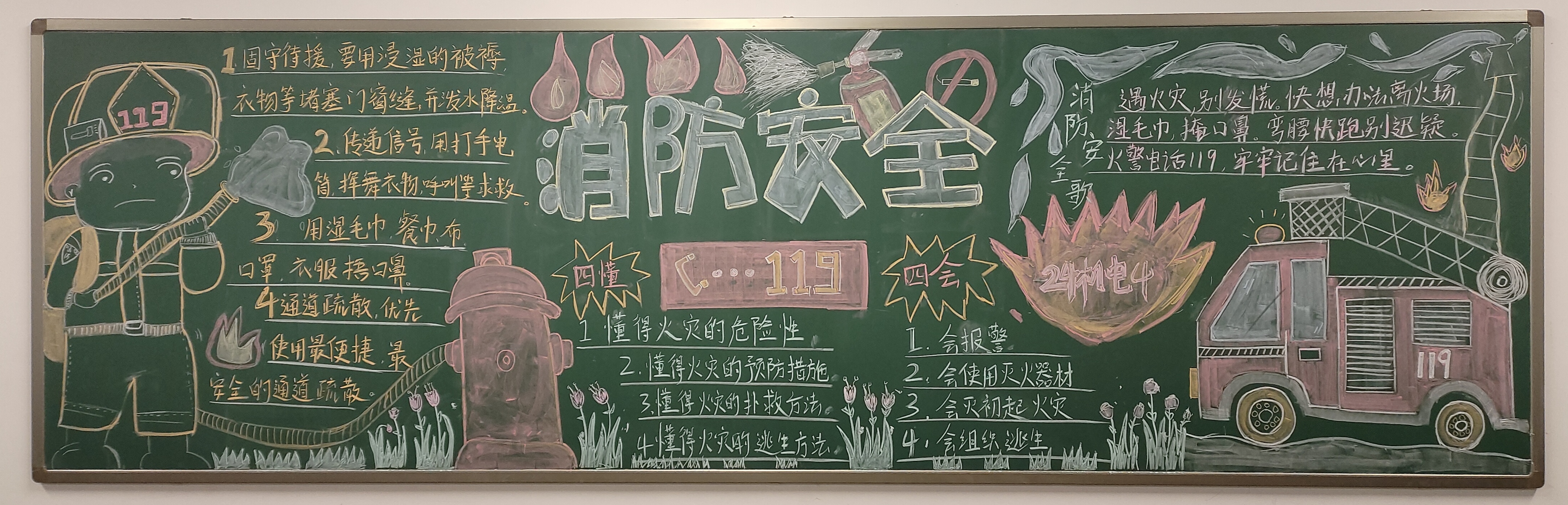 机电工程学院各个班级积极响应,精心准备。同学们通过查阅资料、集思广益,设计出了一幅幅内容丰富、形式多样的黑板报。黑板报内容涵盖了消防基础知识、火灾逃生技巧、消防器材的使用方法等多个方面,不仅消防知识丰富,而且图文并茂,易于理解。