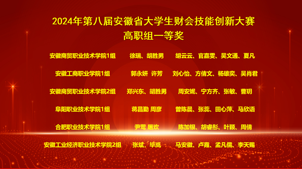 11月24日上午,由安徽省教育厅主办的“2024年安徽省大学生财会技能创新大赛”在铜陵学院圆满落下帷幕。经过激烈角逐,我校经贸旅游学院选派的由陈加银、胡睿彤、周倩、叶颖四位同学组成的参赛队在55支参赛队伍中排名第五,取得了一等奖的好成绩。