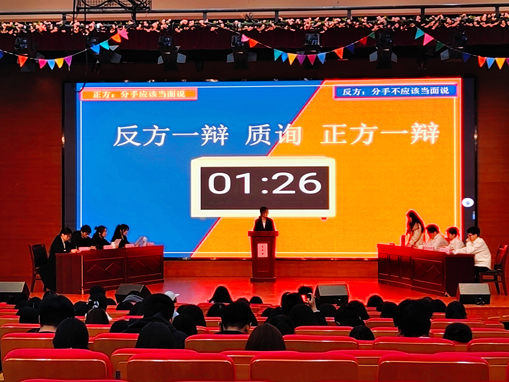 为提高同学们的逻辑推理、语言表达和团队协作能力,提升同学们的综合素质,生物工程学院团总支于11月22日在大学生活动中心二楼报告厅举办“以辩明理,以论求真”主题辩论赛晋级赛,此次比赛如同智慧的竞技场,闪耀着思维碰撞的火花,各队辩手齐聚一堂,在唇枪舌战中一决高下,吸引了众多同学前来观赛。本次辩论赛筹备精心,从辩题选择到赛场布置等多个环节都认真准备,辩题紧扣时代脉搏和校园生活,兼具趣味性与深度,比赛规则在国际辩论通用模式的基础上加以创新,分为开篇立论、攻辩、自由辩论、观众提问和总结陈词五个环节,确保比赛公平、公正、有序地开展。