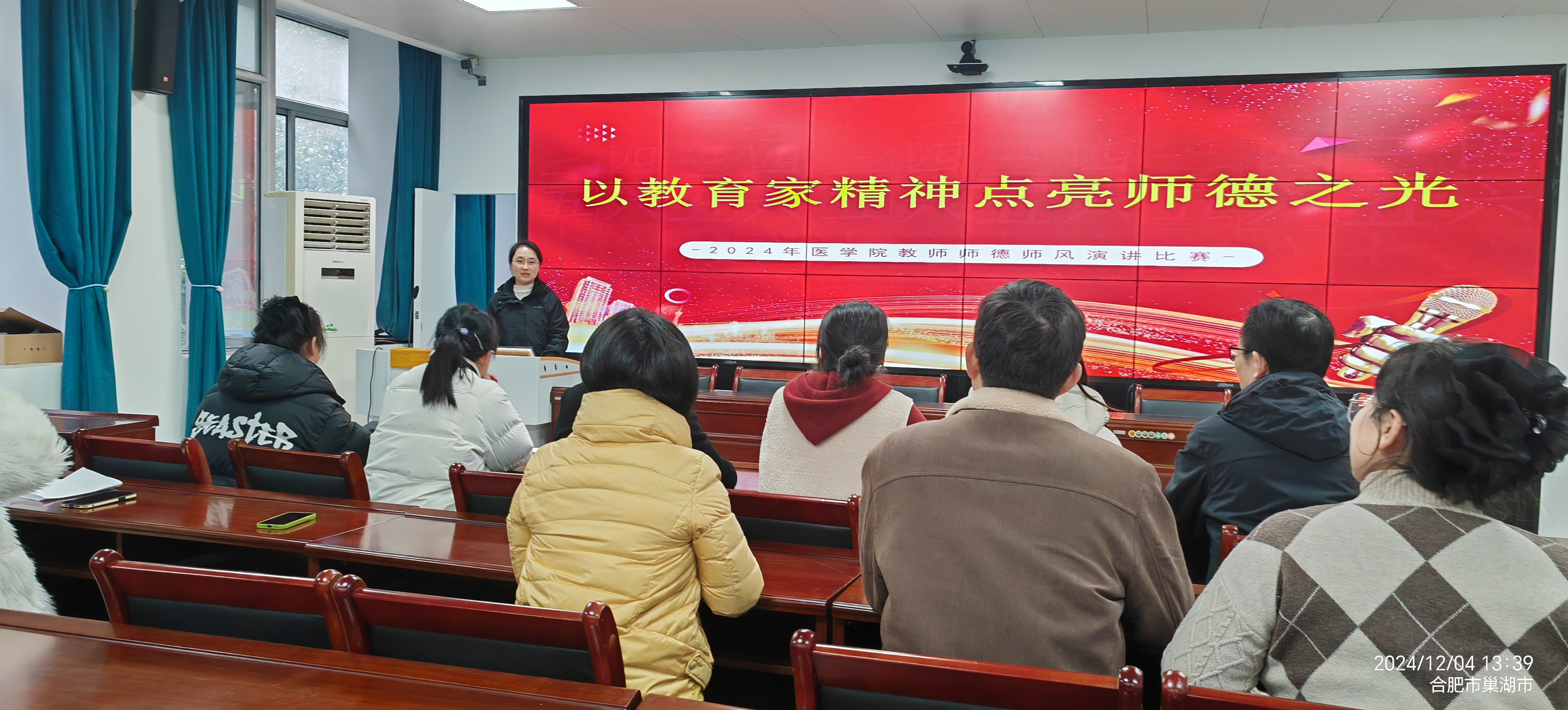 为牢记为党育人、为国育才的初心使命,树立“躬耕教坛、强国有我”的志向和抱负,大力弘扬心有大我、言为士则、启智润心、勤学笃行、乐教爱生、胸怀天下的教育家精神,医学院积极响应校工会关于举办 “以教育家精神点亮师德之光”演讲比赛活动要求,12月4日,在医学楼216会议室举行“以教育家精神点亮师德之光”为主题的师德师风演讲比赛。
