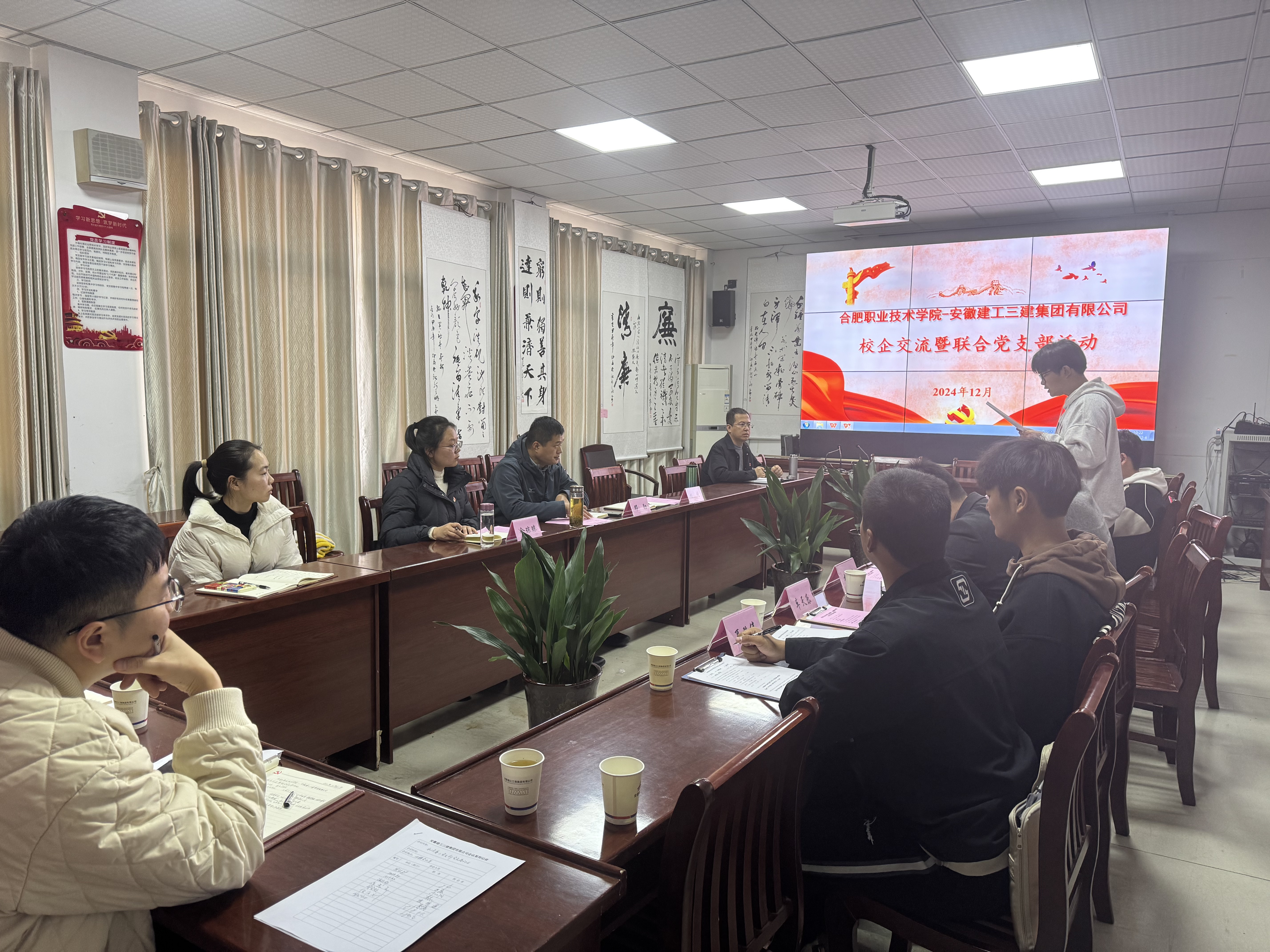 为进一步贯彻落实党的二十届三中全会和习近平总书记在安徽考察时的重要讲话精神,充分发挥党建引领校企协同育人作用,12月6日上午,建筑工程学院党总支委员、副院长邓勋,第五党支部书记金琼琼,综合办主任杨靖一行到安徽建工三建集团有限公司开展联合党支部活动。本次活动受到安徽建工三建集团有限公司党委组织部、数字信息部与机关第二党支部等相关部门的大力支持。