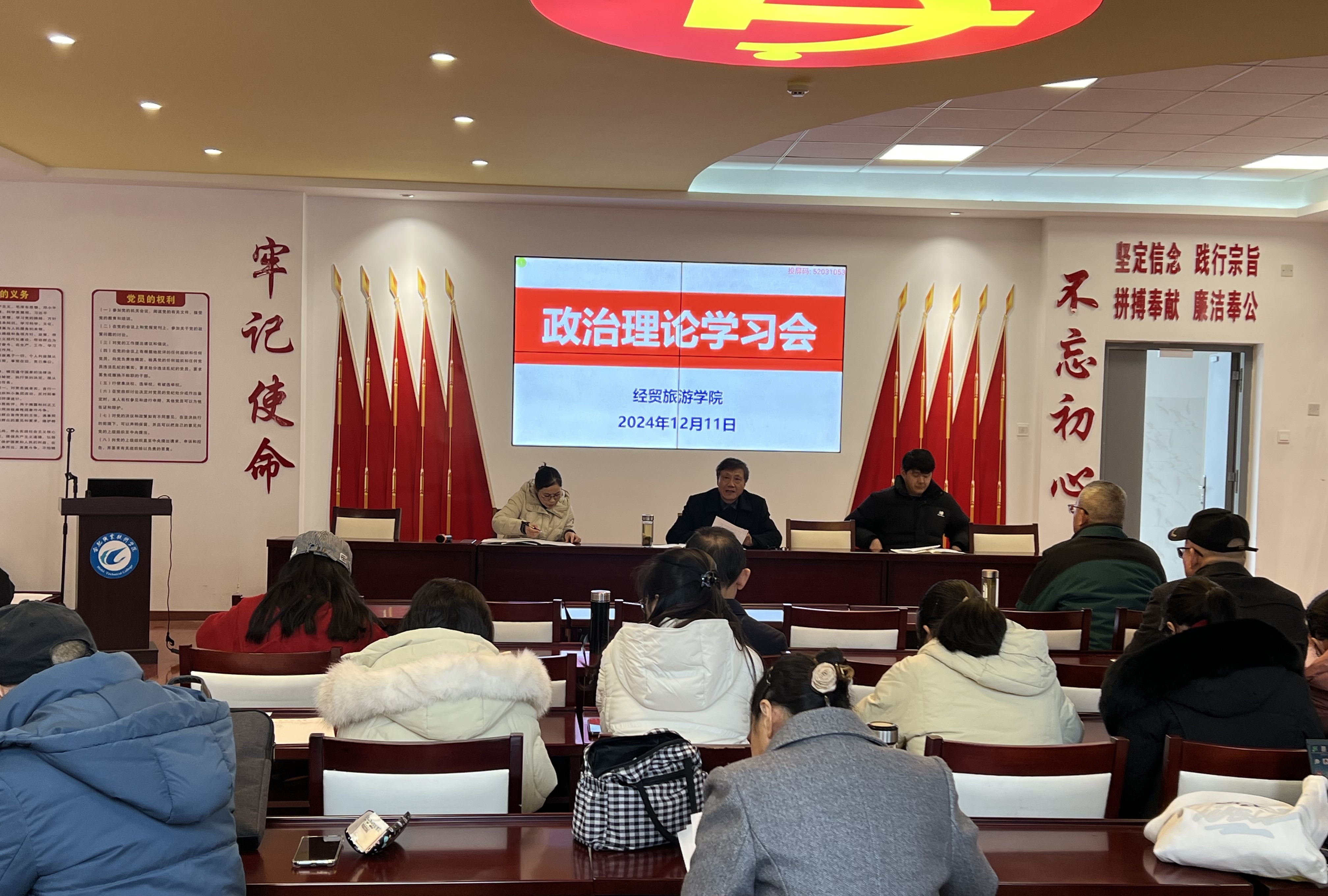 12月11日下午,经贸旅游学院在党性体验馆召开了政治理论学习会暨全体教职工大会。学院党政、全体教职工参加会议,会议由副院长付晓兰主持。