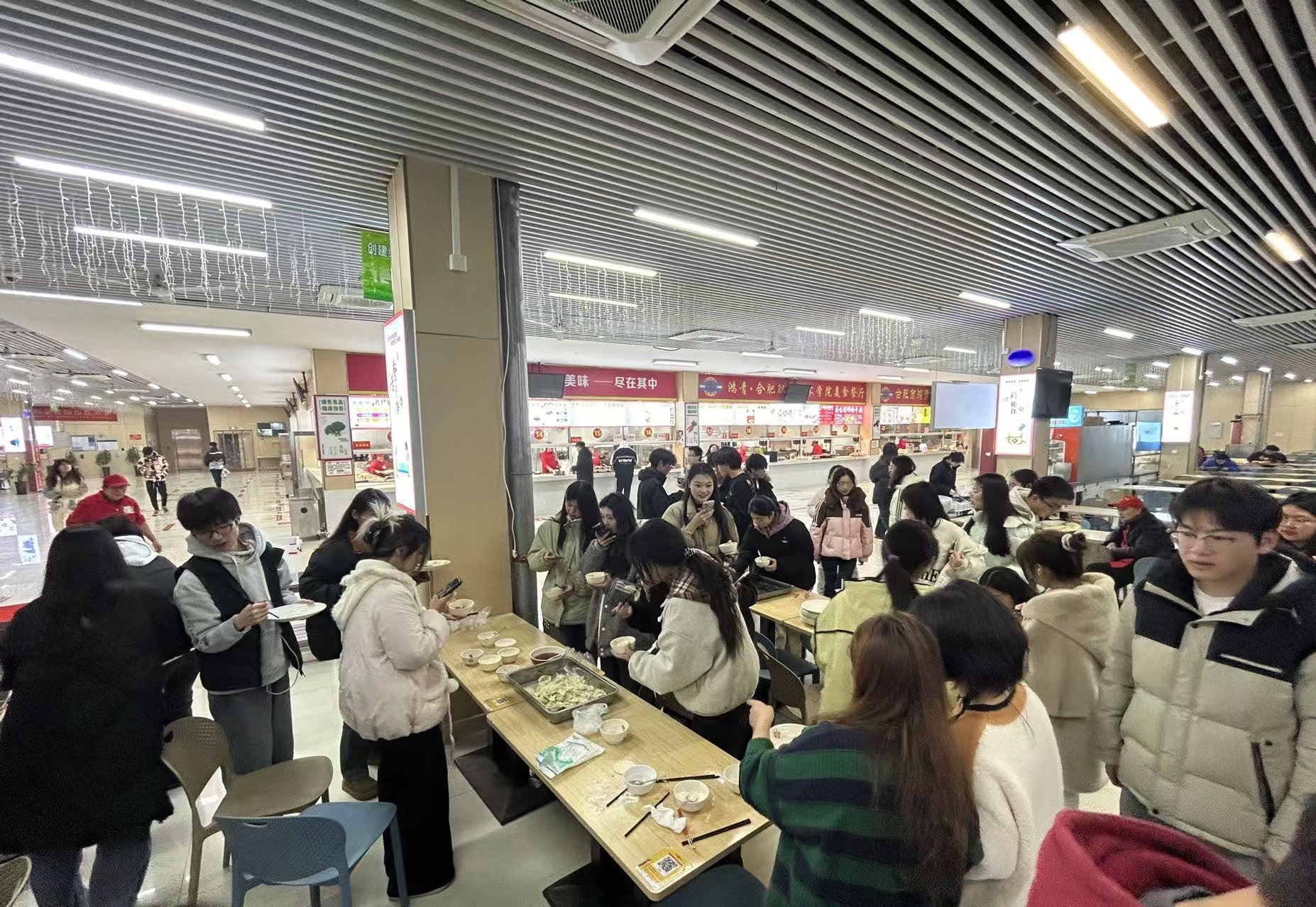 随着夜幕降临,一盘盘热腾腾的饺子被端上了餐桌。大家围坐在一起,品尝着自己亲手包制的饺子,感受着节日的温暖与欢乐。同时,校学生会的同学们也为在现场的我校学生送上热气腾腾的饺子,也让大家感受到来自学生会组织的关怀和温暖。
