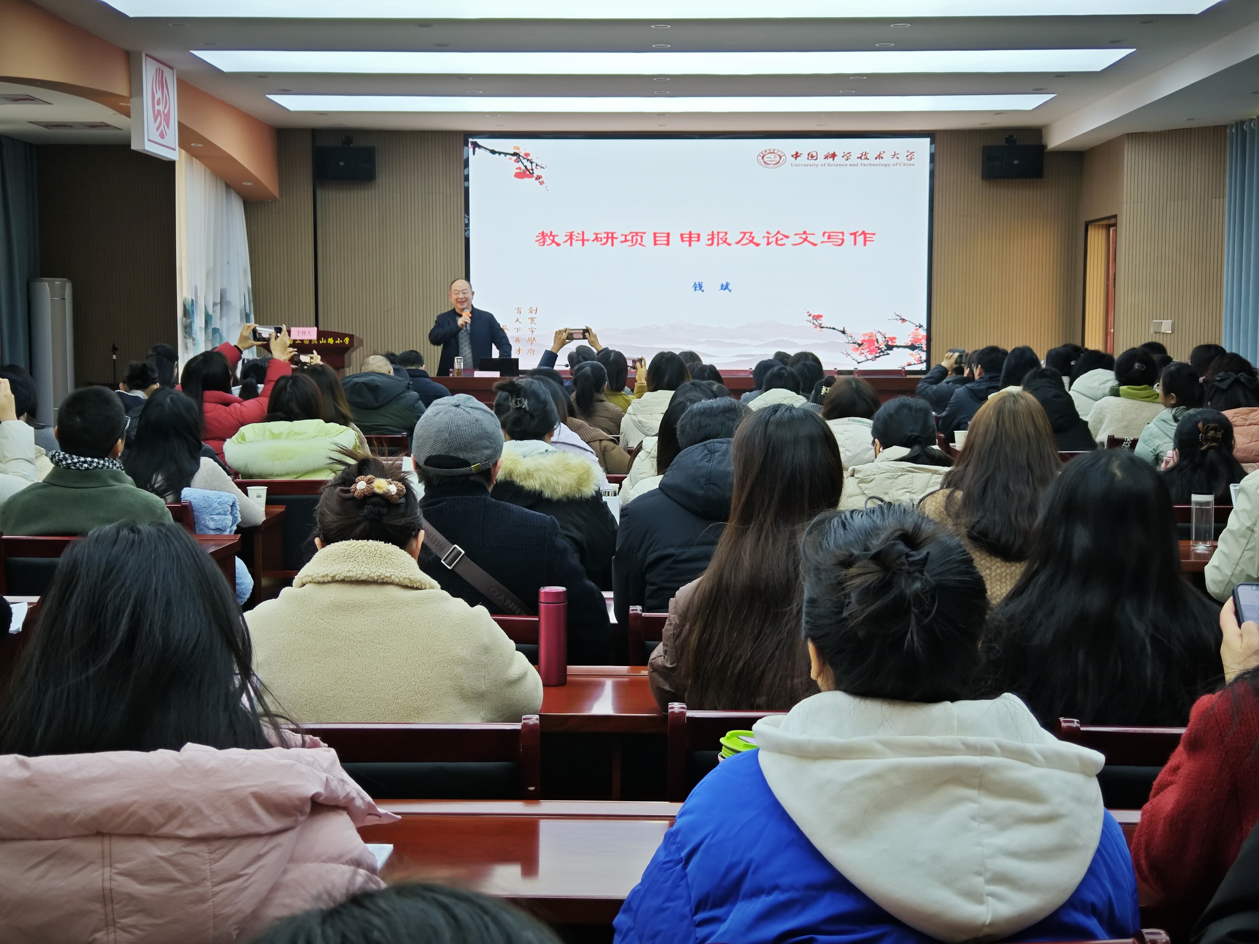 为提高合肥市暨新站区大中小思政课一体化共同体成员单位教师教科研能力和论文写作水平,进一步推动区域教育事业的发展,马克思主义学院于12月25日下午邀请中国科学技术大学马克思主义学院教授、博士生导师钱斌开展了“教科研项目申报及论文写作”专题讲座。本次讲座由我校马克思主义学院主办、合肥市园上园烈山路小学承办,新站区及周边各大中小学百余名教师参加。