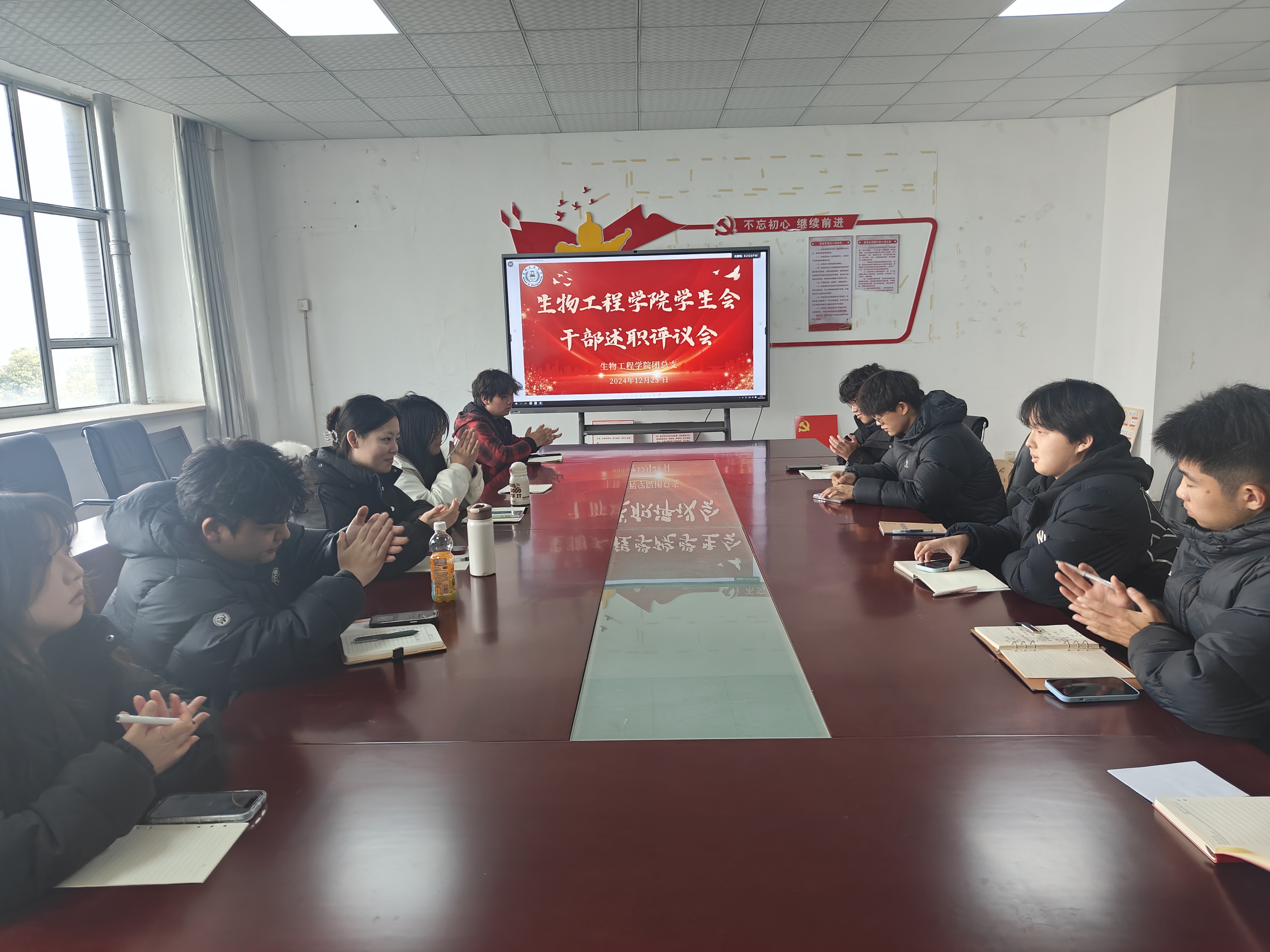 为进一步促进学生会组织工作制度化、规范化、系统化,总结经验、反思不足,12月25日,生物工程学院于生化楼A311会议室举行了2024-2025学年第一学期学生会干部述职评议会议,此次会议回顾过去一学期的工作成果,总结经验教训,并为即将到来的新年规划工作方向。团总支书记季学强老师、辅导员代表汪纬静老师、院学生会全体成员参加。
