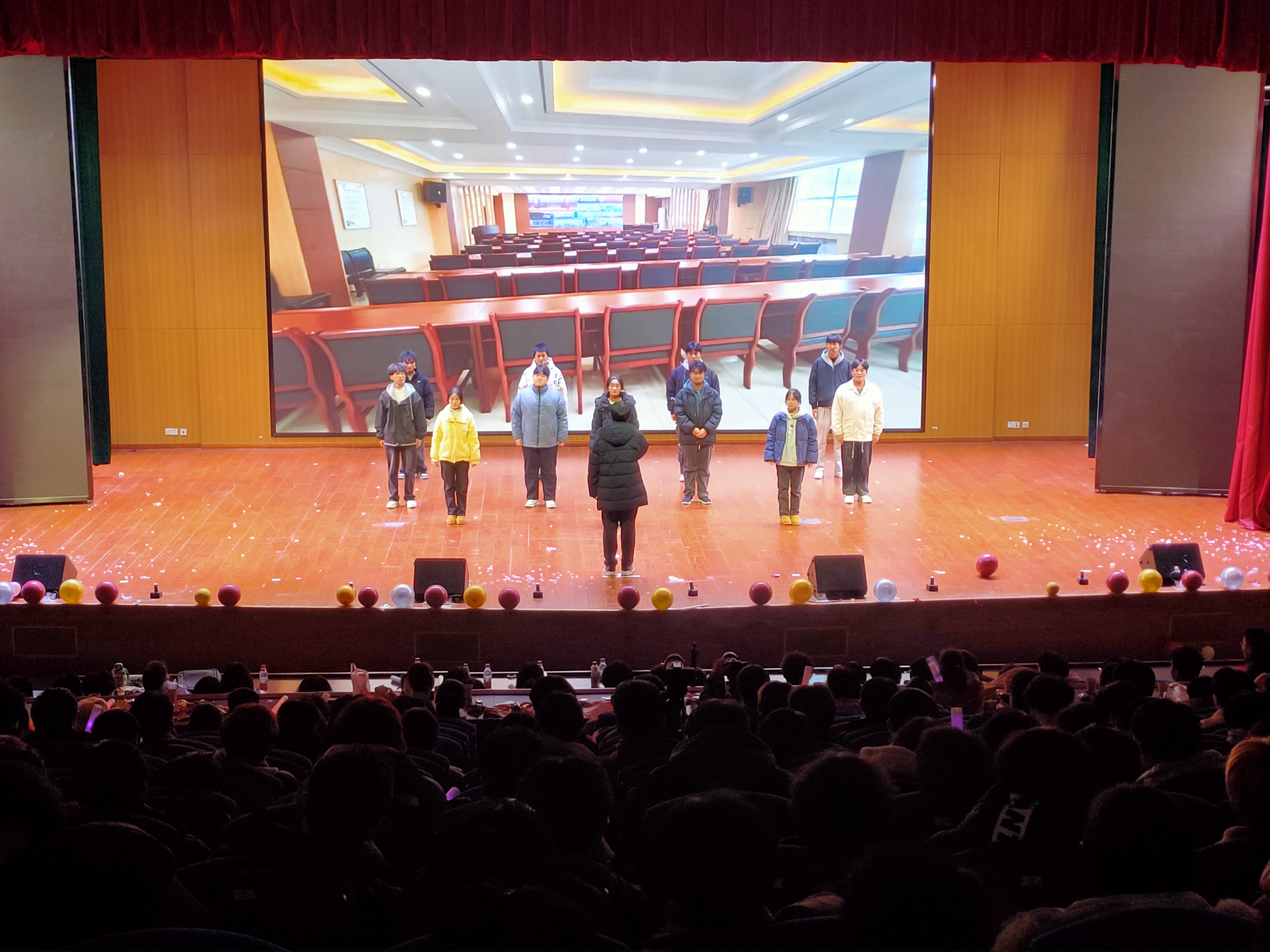 一元复始、万象更新。为弘扬中华优秀传统文化,营造文明和谐、喜庆祥和的新年气氛,充分展现青年学子风采,12月26日晚,机电工程学院在汇心湖校区大学生活动中心二楼报告厅举办“祥蛇献瑞 喜迎元旦”2025年元旦迎新晚会,师生们欢聚一堂,共同迎接新一年的到来。学院党政领导班子、全体专兼职辅导员、教师代表、学校和其他二级学院学生会代表以及400余名新生共同观看演出。