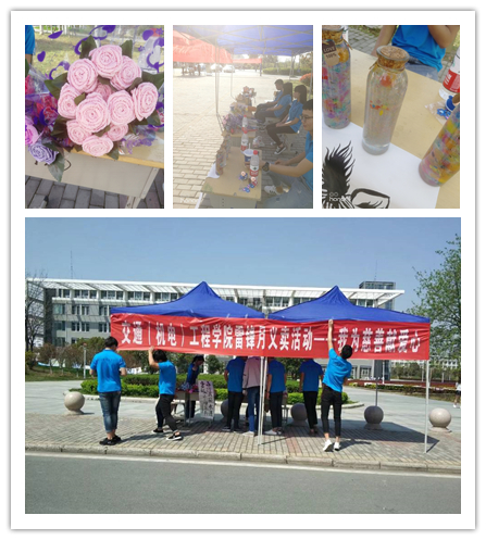 有趣的叠纸、美丽的手工玫瑰花、精美的木制玩具……各类义卖品整齐有序排列在义卖区桌子上,吸引了大批师生的目光。尽管三月的天气有些炎热,但义卖区的“顾客”却不少,搬桌椅、拉横幅、整理义卖品、介绍义卖品、收款登记……交通(机电)工程学院的学生会成员们从一大早就忙得不亦乐乎。全校师生们也热情踊跃参与,纷纷慷慨解囊,积极为爱心活动做出自己的贡献。经过一天的义卖,本次活动共筹得善款1704元,此善款将全部用于爱心捐赠。(供稿:交通(机电)工程学院  编辑:沈婉婉)