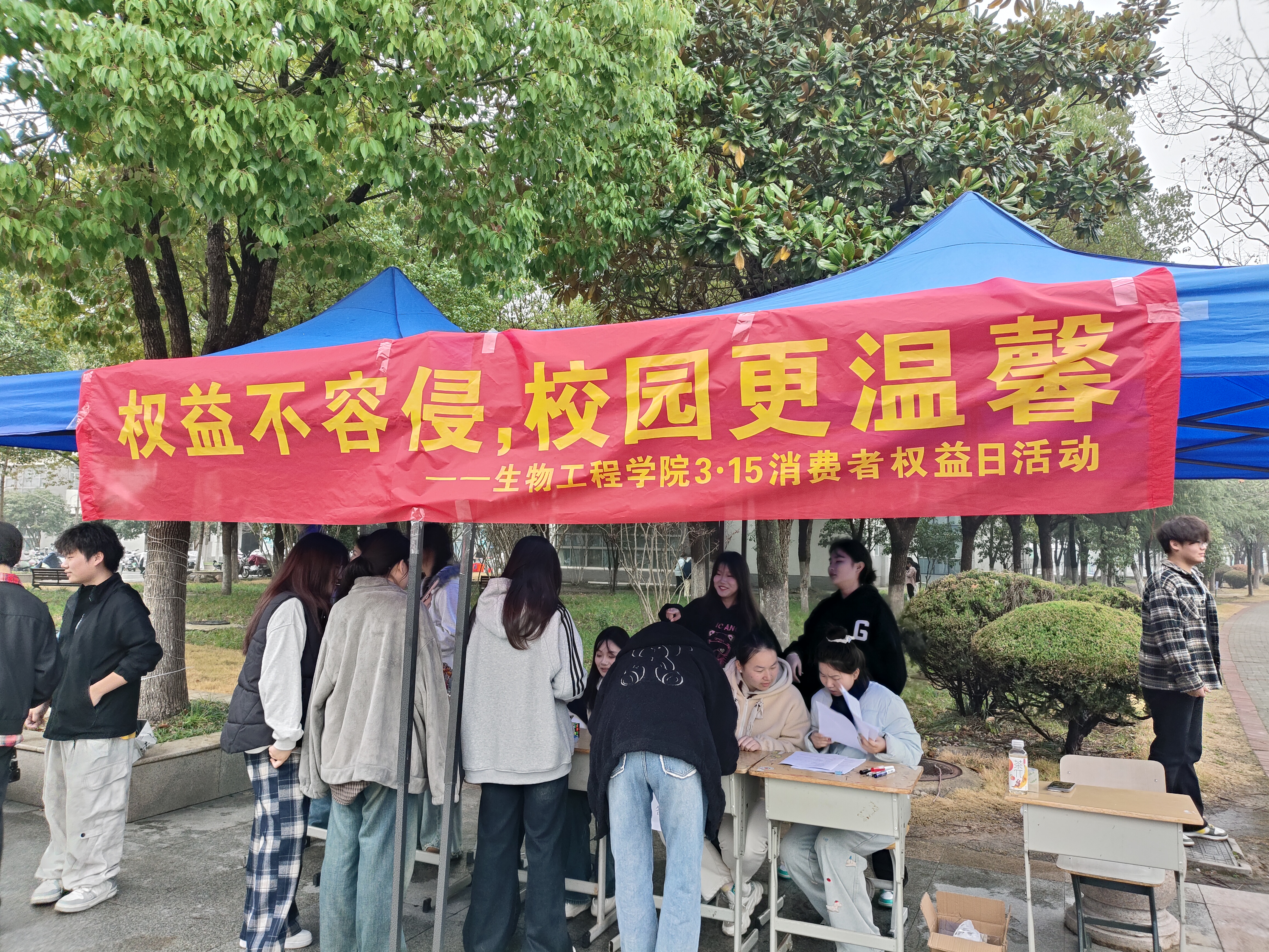 为增强同学们的消费权益保护意识,提高自我保护能力,优化校园消费环境,营造安全、公平、诚信的校园消费环境,生物工程学院于3月13日在鼓山校区一食堂门口举办了“共促消费水平,维护消费权益”的3·15消费者权益日主题活动。本次活动旨在引导大学生学会通过合法途径维护自身权益,提升辨别消费陷阱的能力,共同营造安全放心的校园消费环境。