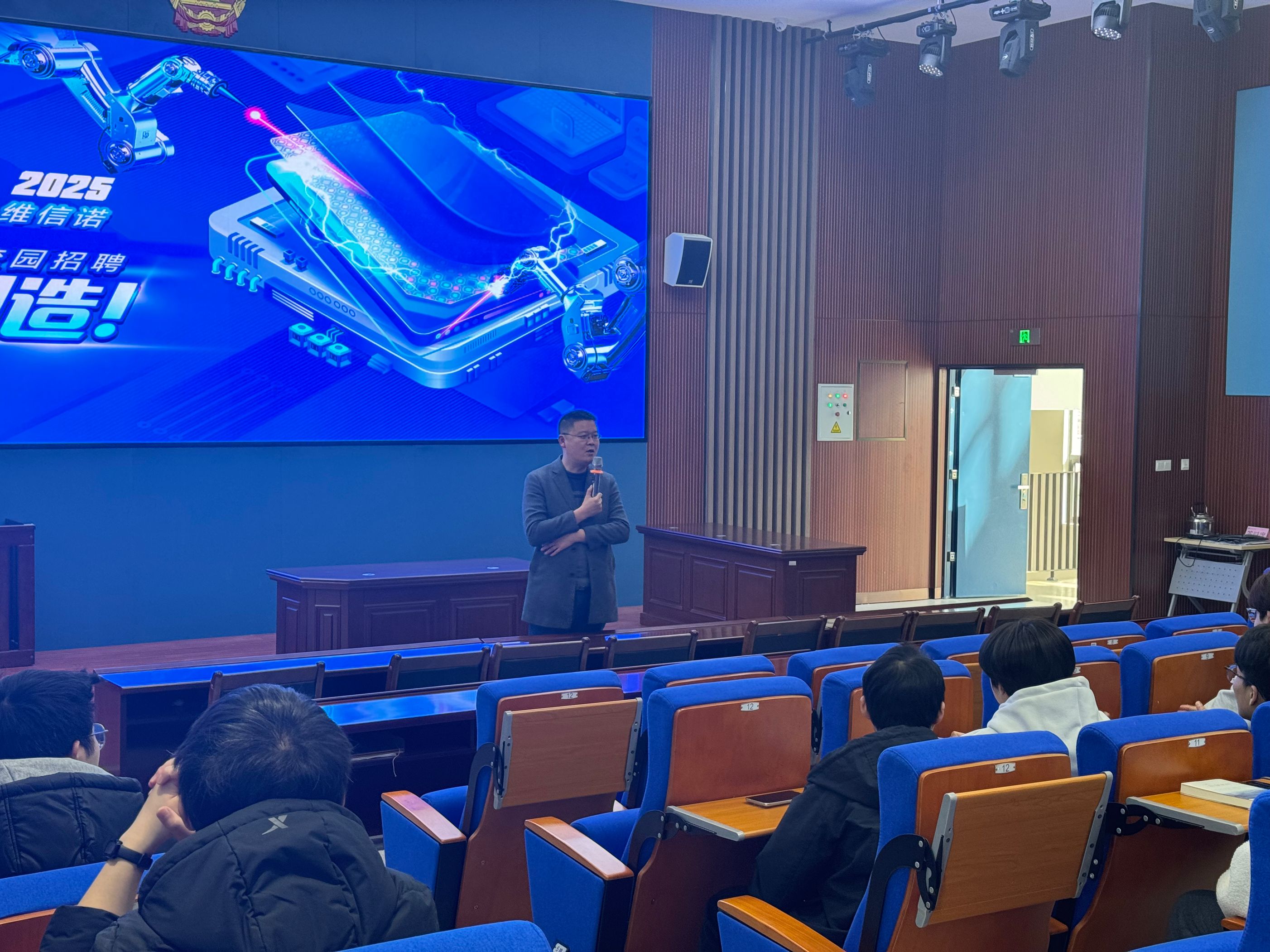 3月19日下午,合肥维信诺-合肥888集团学院宣讲招聘会在我校思政馆举办,新站高新区人才服务中心副主任彭俊,合肥维信诺科技有限公司人力资源部招聘经理常腾飞,机电工程学院、信息工程与传媒学院、轨道交通学院2023级学生100余人参加宣讲招聘会。会议由学生处处长王克勇主持。