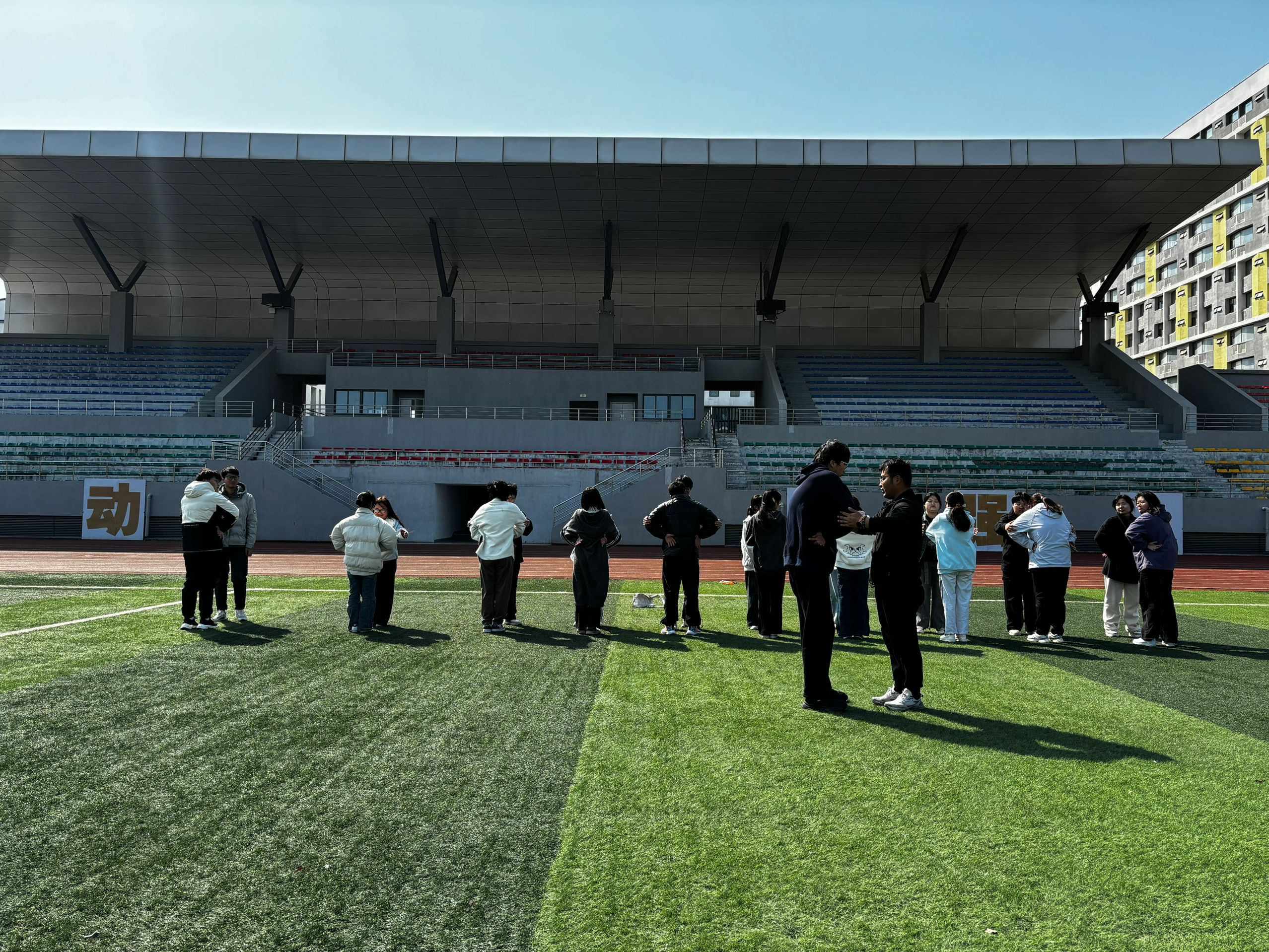 进入实操教学阶段,指导老师亲自示范多种上肢和下肢的柔韧牵拉动作,从肩部环绕、手臂交叉拉伸等上肢动作,到站立前屈、弓步压腿等下肢动作,每一个动作都详细讲解了要领、起始姿势、运动轨迹、保持时间以及呼吸的配合方法。同学们认真跟随老师的示范,分组进行练习。每组都安排了组长负责指导,老师与志愿者们则在各小组间巡回观察,及时纠正同学们的错误动作,提供个性化的指导。练习过程中,同学们积极交流感受,提出疑问,现场学习氛围浓厚。
