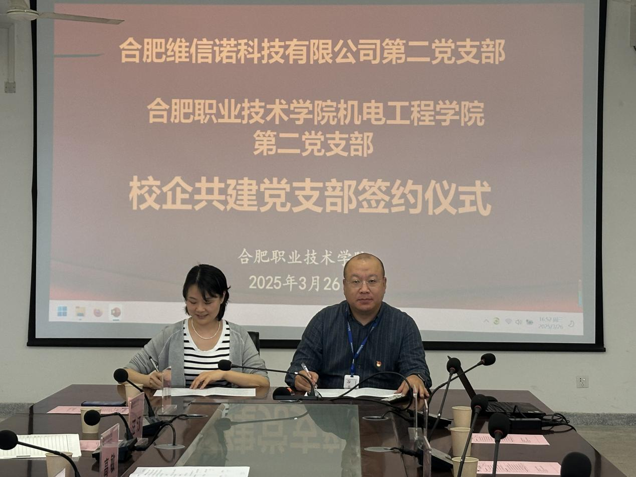 随后,在全体与会人员的见证下,维信诺科技有限公司第二党支部与合肥888集团学院机电工程学院第二党支部签订了共建合作协议。这一协议的签订标志着双方在校企党建合作方面迈出了坚实的一步。