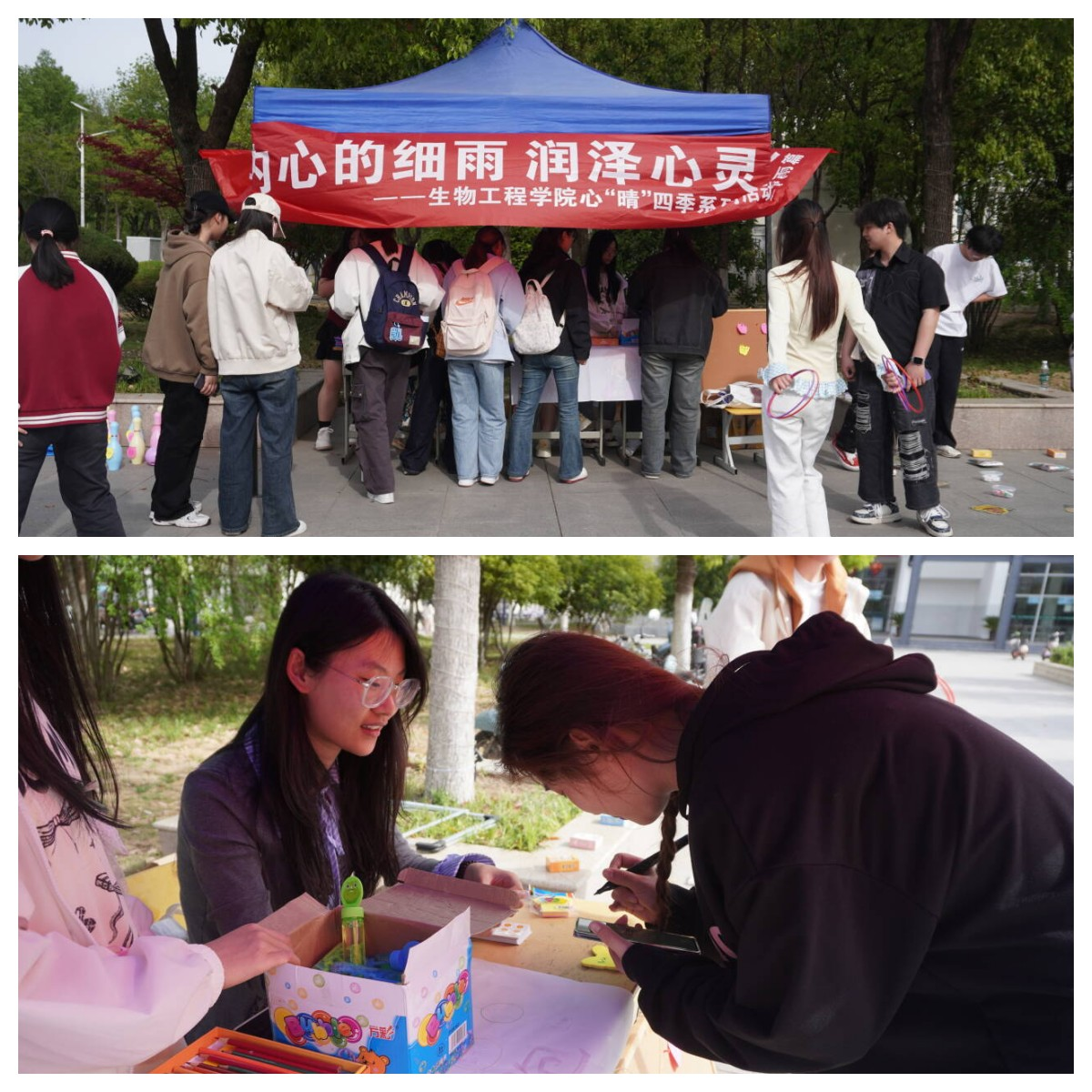 为切实增强心理育人工作实效,助力学生以积极心态面对春季气候特点引发的心理调适需求,4月16日下午,生物工程学院二级心理辅导站在一食堂广场前成功举办“心晴四季”谷雨主题心理活动。活动以谷雨节气为纽带,通过互动体验引导百余名学生探寻情绪管理智慧。