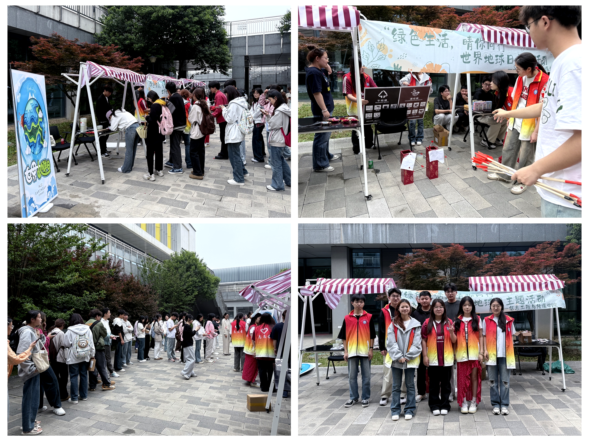 4月22日,为响应第56个世界地球日倡议,信息工程与传媒学院于教学楼北教东侧小广场举办“绿色生活,‘晴’你同行”主题实践活动。活动以趣味互动活动为载体,融合环保科普与传统技艺,通过寓教于乐的形式掀起校园绿色行动热潮,吸引200余名师生参与,为春日校园增添一抹生动的绿色生机。
