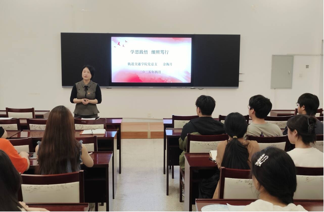 为深入学习贯彻习近平新时代中国特色社会主义思想和党的二十届三中全会精神,切实做好党员发展工作,提升入党积极分子的政治素养与理论水平,4月23日下午,轨道交通学院第七期入党积极分子业余党校培训班开班仪式在轨道楼309教室举行。校宣传统战部长、轨道交通学院党总支书记佘海月出席并讲授专题党课。轨道交通学院第三、第四、第五党支部全体教师党员及第七期业余党校全体学员参加了此次活动。