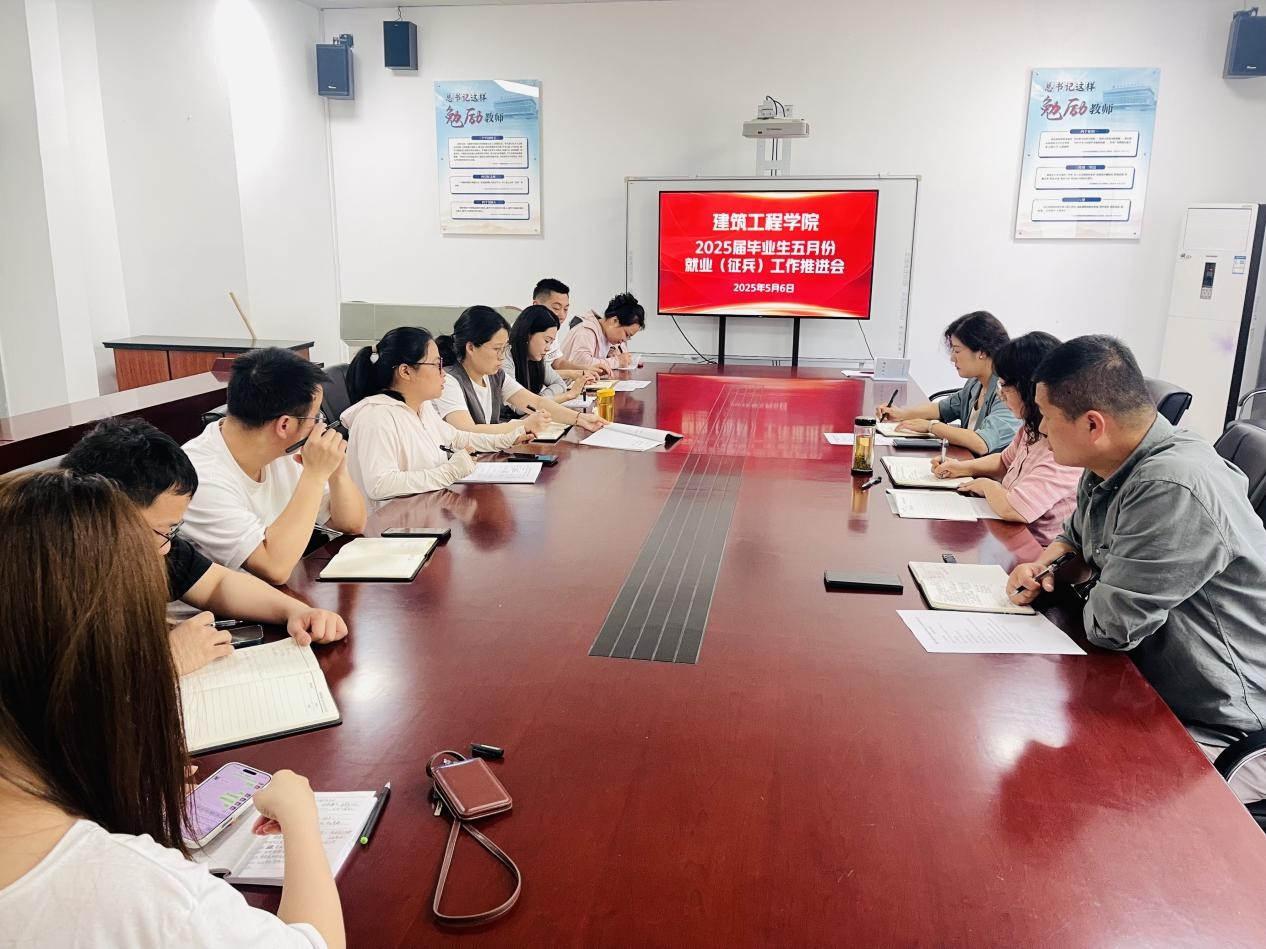 为进一步推进毕业生就业与征兵工作,确保毕业生高质量就业和顺利入伍,5月6日下午,建筑工程学院于建工楼213会议室召开五月份就业征兵工作推进会。该院党政班子成员及全体毕业班辅导员参会,会议由该院党总支副书记施芳芳主持。